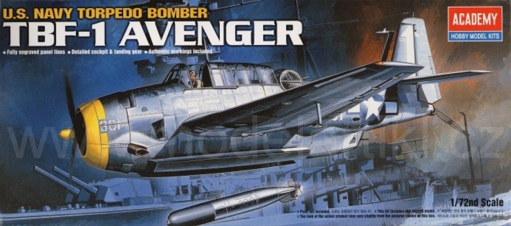 Nesestavený plastikový model torpédového letounu TBF-1 Avenger v měřítku 1:72TBF Avenger byl americký palubní torpédový bombardér z období 2. světové války a těsně po ní. Byl nástupcem typu Douglas TBD Devastator. Na první pohled neforemné letadlo Avenger bylo spolehlivé a velmi houževnaté.- Jednalo se o jednomotorový torpédový a bombardovací jednoplošník se záďovým zatahovacím podvozkem, určený ke službě na letadlových lodích. Posádku tvořili tři muži. Torpédo bylo neseno v dlouhé pumovnici uvnitř trupu.- Detailní paneláž a nýtování- Detailně zpracovaný kokpit a podvozek- Stavebnice obsahuje autentické obtiskySpecifikace modelu:Měřítko: 1:72Lepidlo ani barvičky k tomuto modelu nejsou součástí, je ale možné je přiobjednat v našem eshopu zvlášť.