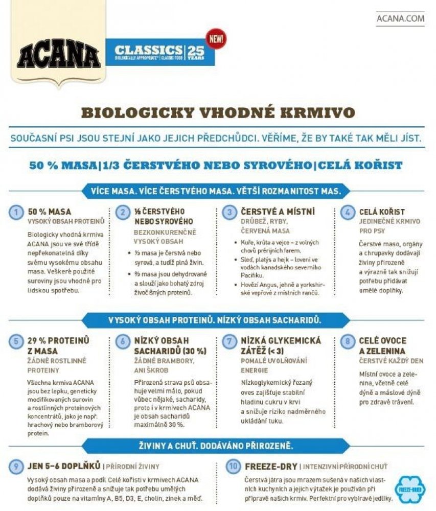 z čerstvých surovin od důvěryhodných dodavatelů je ACANA krmivem, které