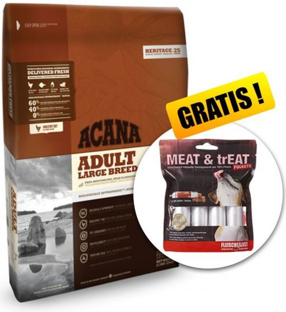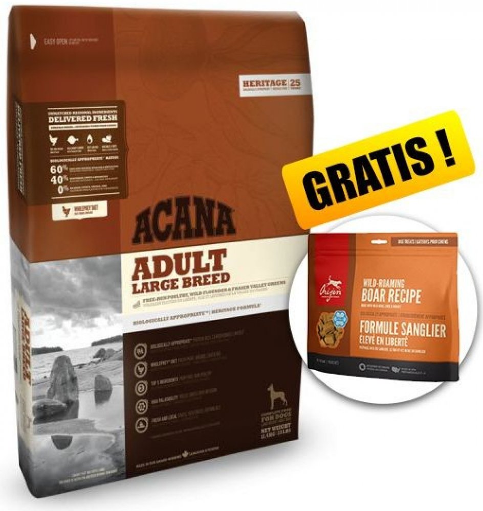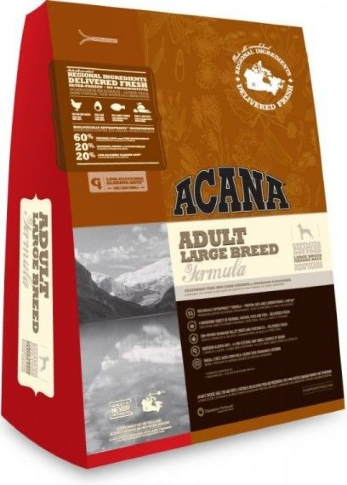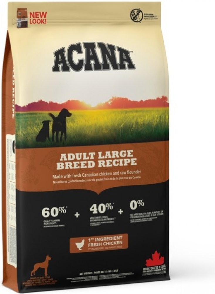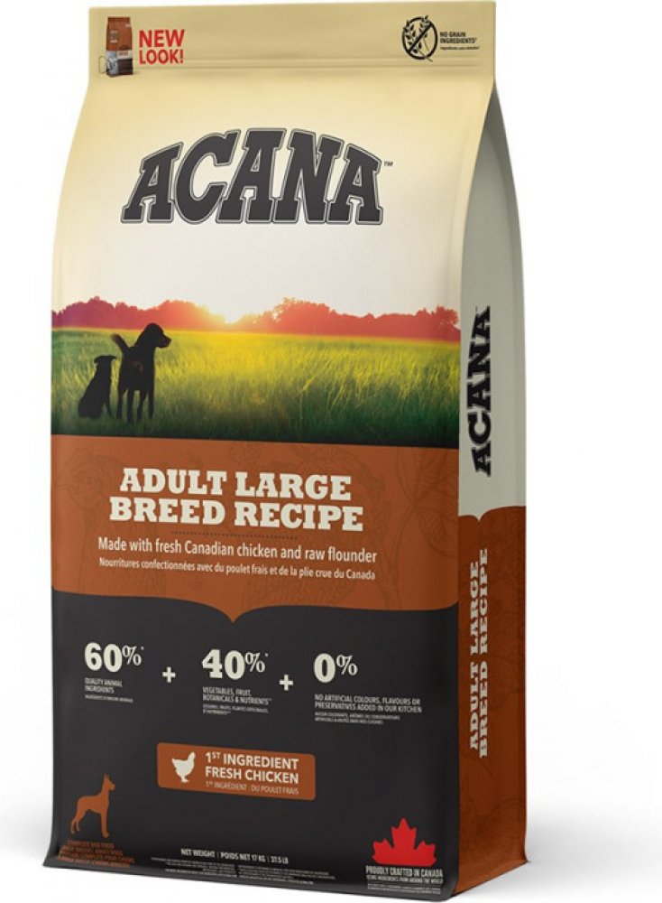 Pro psy velkých plemen vážících více než 25 kg. Připravováno v oceňovaných kuchyních v kanadě. Acana adult large breed překypuje čerstvými místními surovinami včetně volně chovaných kuřat, vajec z hnízdních chovů, platýse loveného volně v přírodě a na slunci zrajícího ovoce a zeleniny – všechny suroviny dodávají výživu a chutnost a zajišťují tak vrcholovou kondici psů velkých plemen. Přečtěte si n...