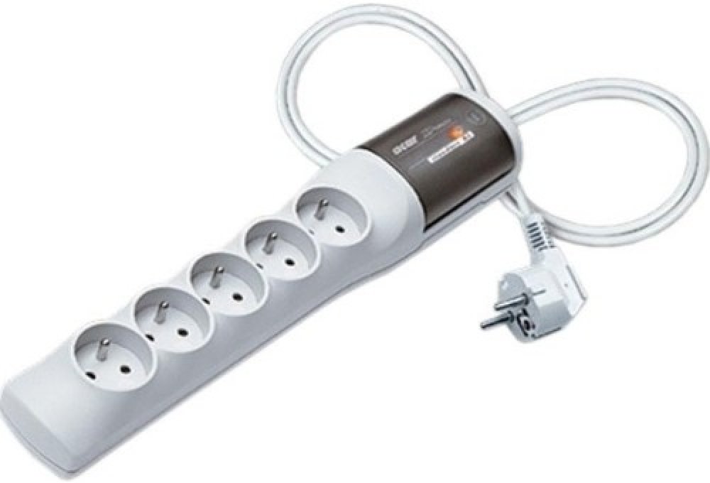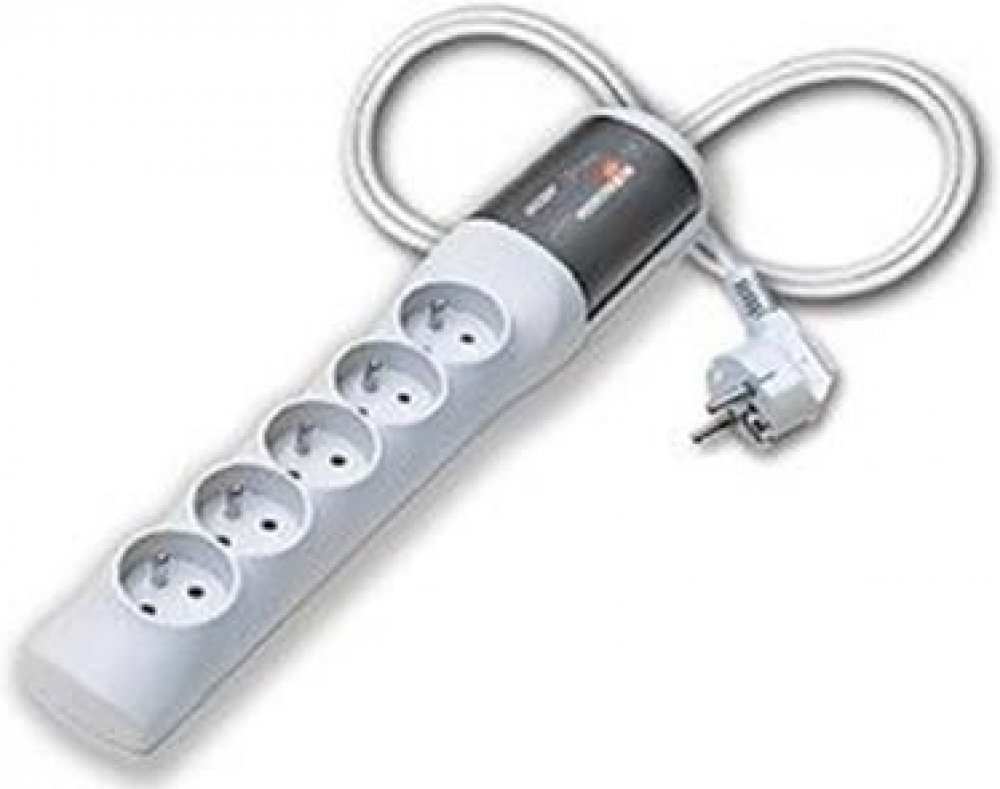 Pět síťových zásuvek s uzemněním francouzského typu.