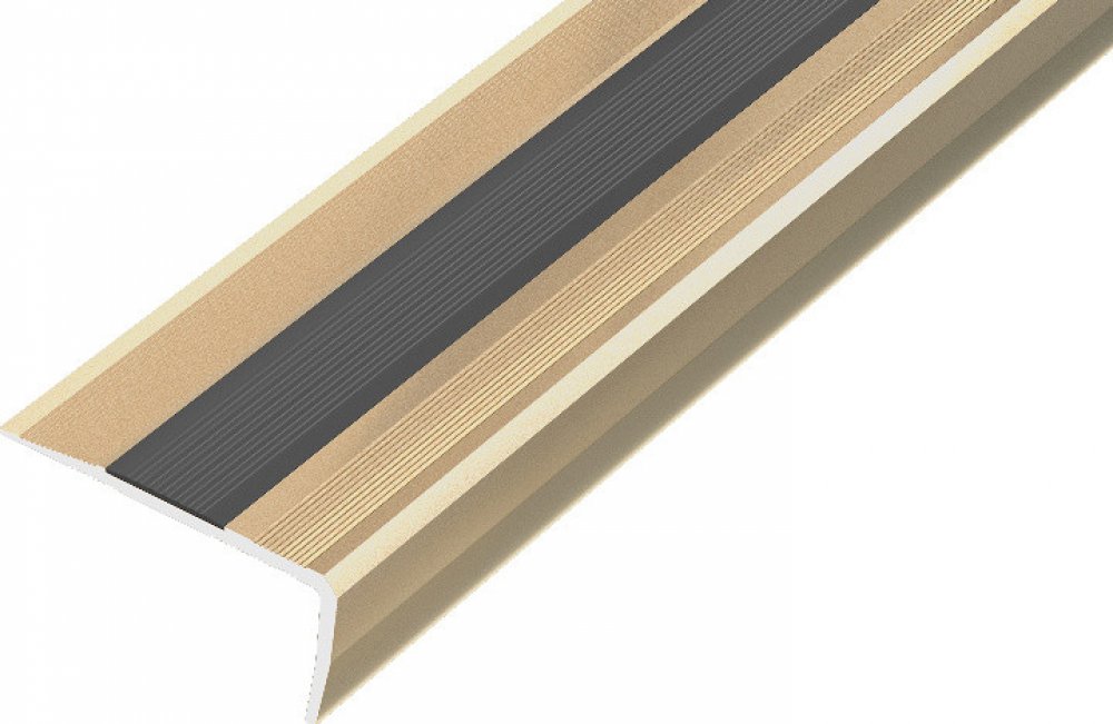 Eloxovaná schodová hrana 38x18 mm s protiskluznou gumou je lišta decentního vzhledu splňující všechny bezpečnostní normy a parametry. Díky protiskluzné gumě může být použita i v komerčních prostorech.