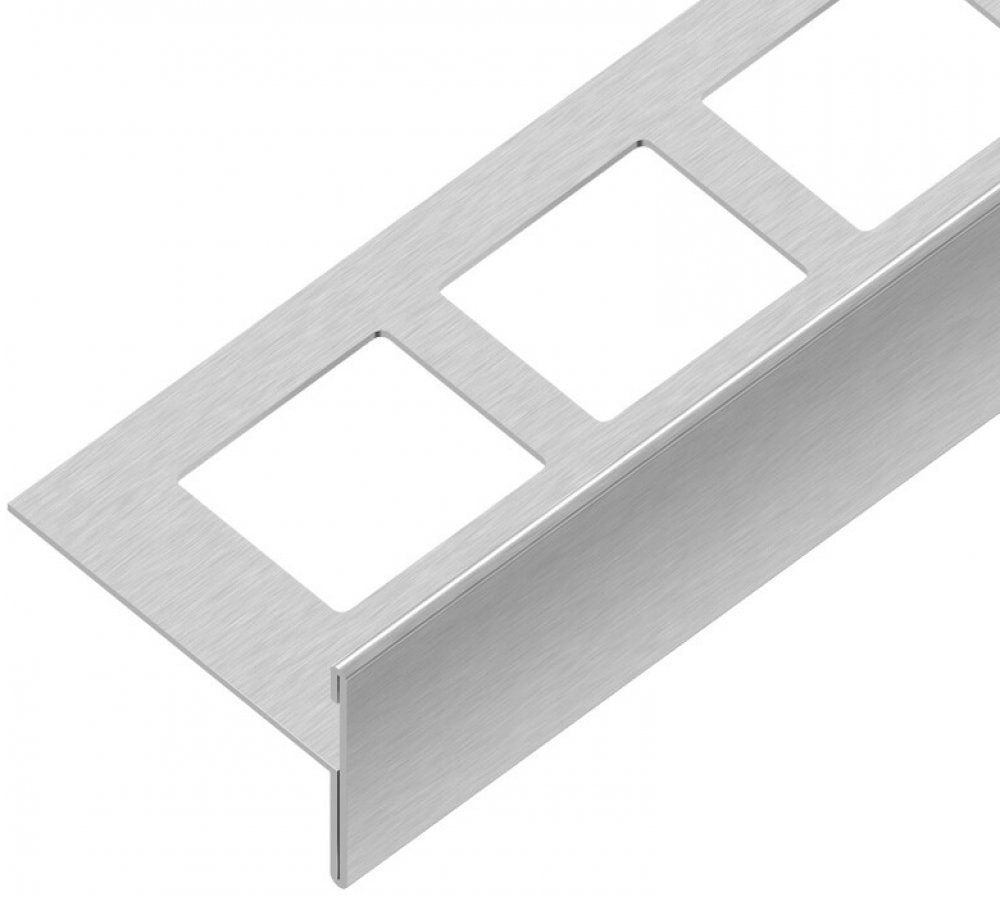 Schodová hrana step „T“ chrání a zakrývá spoj mezi vertikální a horizontální dlaždicí schodu. Může se také použít převráceně, a proto je vhodná pro dvě různé tloušťky dlaždic. Díky své zvláštní geometrii a dostupnosti v různých výškách je vhodná pro všechny druhy schodů. Schodová hrana step „T“ je vyrobena z nerezové oceli.