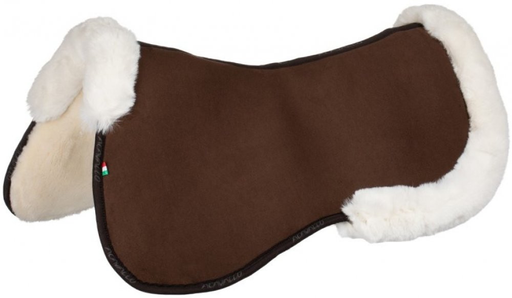 Tlumící podložka pod sedlo Acavallo v semišovém provedení s kavlitní ovčí vlnou a kapsami pro individuální přizpůsobení.Dvoukapsový design této podložky umožňuje uživateli snadno přidávat a odebírat vrstvy paměťové pěny pomocí suchých zipů.Podložka je dodávána se sadou 4 vrstev paměťové pěny střední a vysoké hustoty pro přizpůsobení její tloušťky potřebám vašeho koně.Spodní strana je zcela pokryta ovčí vlnou, přírodním, hypoalergenním, měkkým a jemným materiálem, který je ideální pro prevenci tření, oděrek a puchýřů.