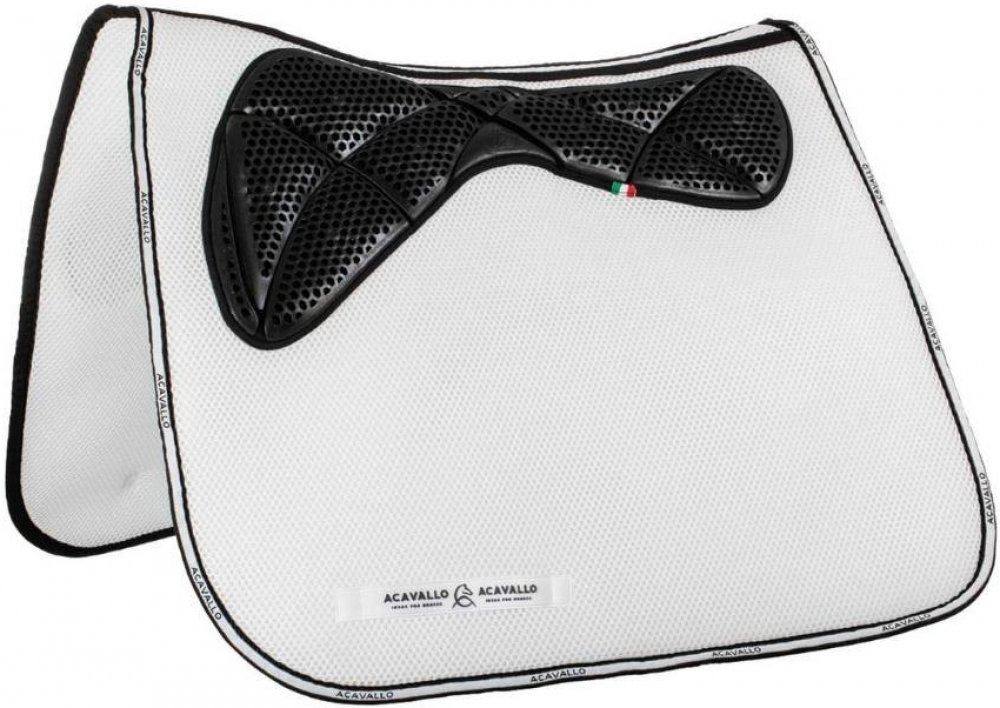 Drezurní podsedlová dečka Acavallo® s volným páteřním kanálem, vyrobená z paměťové pěny a 3D síťoviny s gelovým gripem, je navržena tak, aby poskytovala maximální komfort a vynikající výkon při drezurním ježdění.