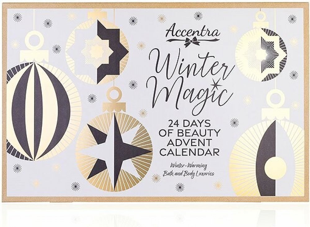 Adventní kalendář ACCENTRA Winter Magic obsahuje 24 kosmetických překvapení určených pro zimní péči a relaxaci – objevíte sprchový gel, tělový peeling, mýdlo, koupelové bomby, sůl do koupele, krém na ruce nebo nohy, vonnou svíčku a další doplňky jako pemzu, pilník na nehty či kartáček na nehty. Adventní kalendář ACCENTRA Winter Magic je vhodná pro každodenní rituály v období adventu nebo jako dáre...