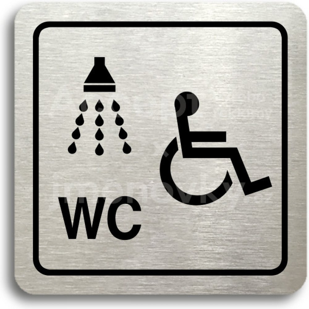 ACCEPT Piktogram sprcha, WC invalidé - stříbrná tabulka - černý tisk