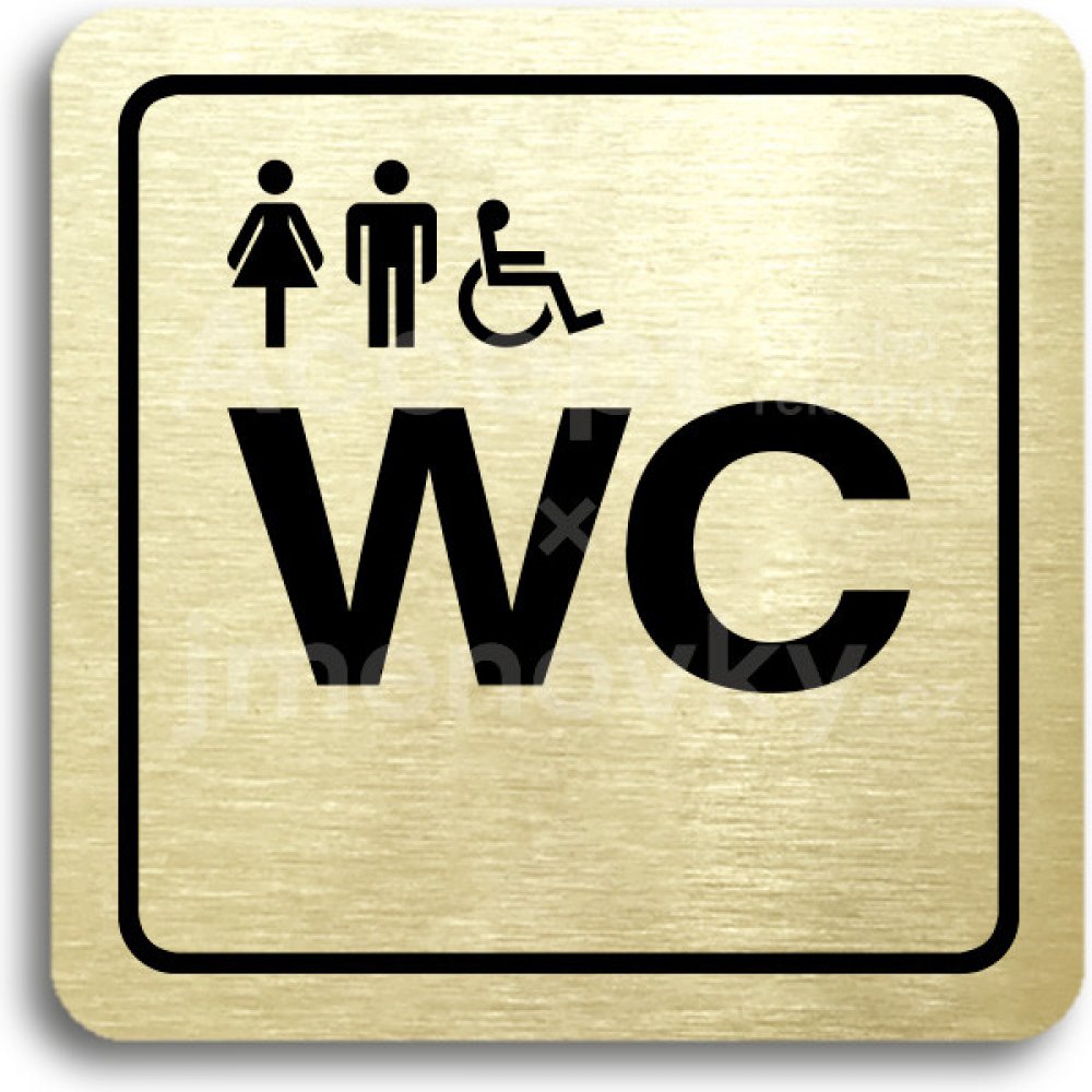 ACCEPT Piktogram WC ženy, muži, invalidé - zlatá tabulka - černý tisk