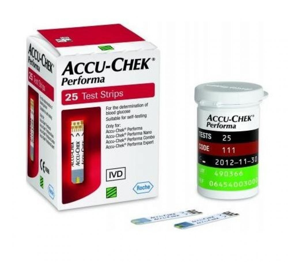 Testovací proužky určené k měření množství glukózy v čerstvě odebrané kapilární, arteriální nebo novorozenecké krvi, a také žilní krvi ošetřené Ll-heparinem nebo EDTA. Lze použít pouze s glukometrem Accu-Chek Performa. Rozsah měřitelných hodnot 0,6 - 33,3 mmol/l.