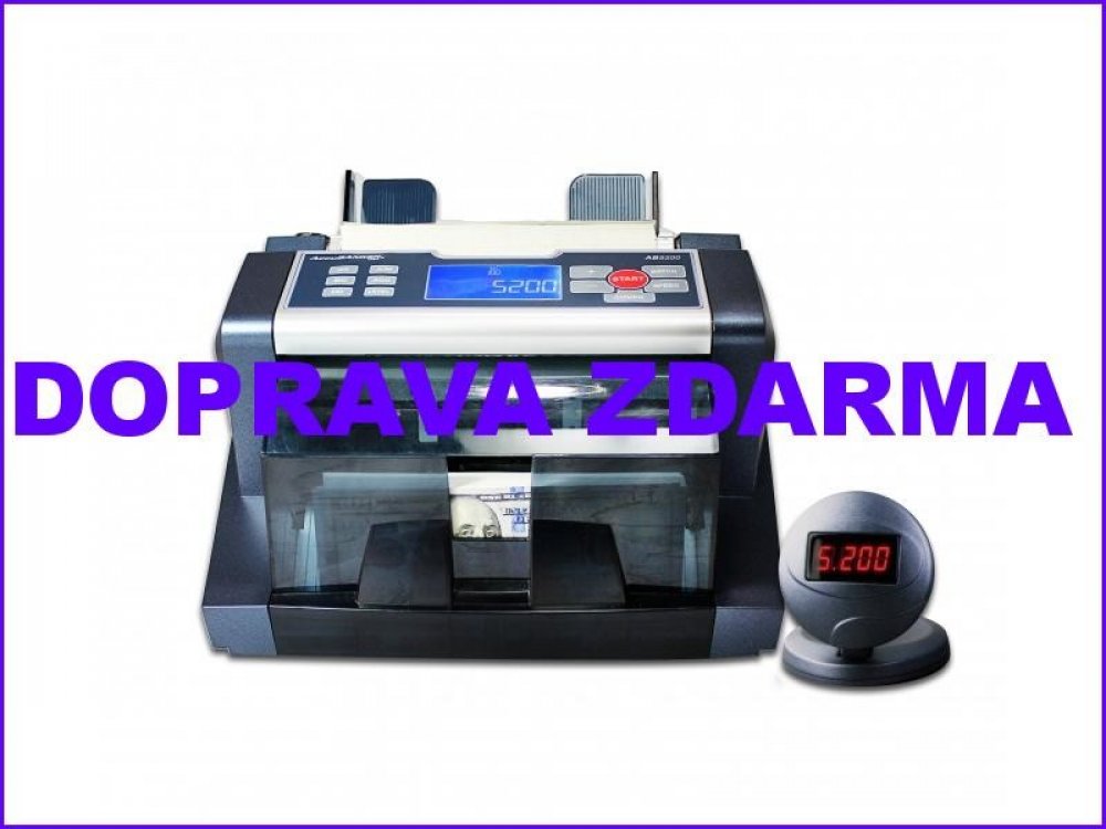 Vysokorychlostní počítačka bankovek AB5200 s automatickým krytem a externím displejemNový typ výkonné, rychlé a přesné počítačky pro vyšší zátěž. Vybavena automatickým protiprachovýmkrytem a externím (zákaznickým) displejem). Čtyři volitelné rychlosti počítání: 1900/1200/1000/600bankovek/min. U českých bankovek kontrola pravosti pomocí UV (ultrafialového světla). Pravost Eura a USD lze kontrolovat...