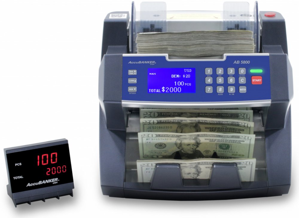 AccuBanker AB5800 kombinuje počítačku bankovek a detektor padělků do 1 zařízení. Je vybavená automatickým hodnotovým počítáním, přičítáním a dávkováním tříděných bankovek – CZK, EUR, USD i jiné bankovky od 115 x 50 až do 170 x 80 mm. Ostatní měny či stravenky lze počítat v běžném kusovém režimu a pro hodnotové počítání lze nastavit i jakoukoliv jinou národní měnu, jako jsou kanadské dolary, mexick...