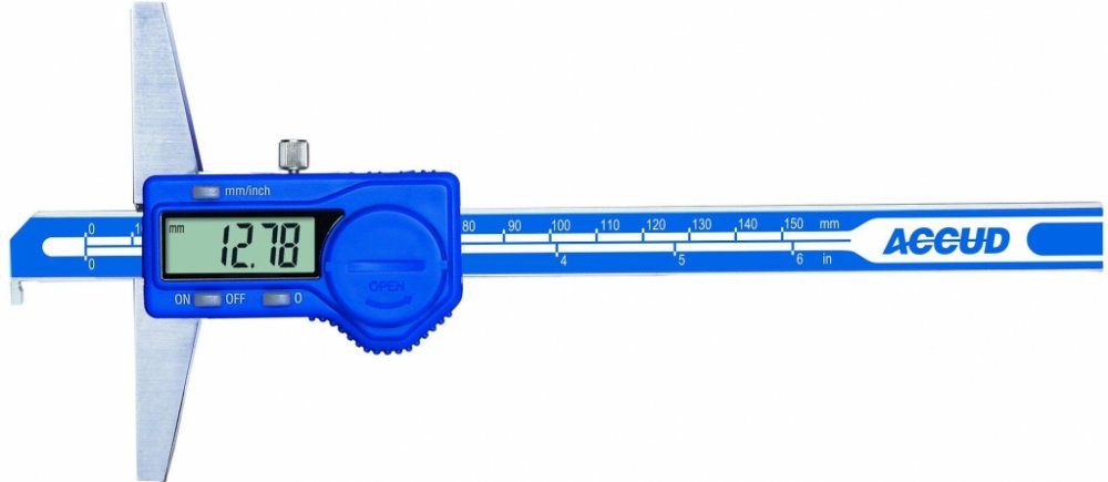 Posuvný digitální hloubkoměr s vyhnutým dotekem (nosem), který je určený pro měření drážek, vybrání a zápichů, jak v otvoru tak i na vnějších plochách a průměrech. Přesnost odměřování 0,01 mm, automatické vypnutí při delší nečinnosti, baterie CR2032, výstup dat - možnost připojení k PC přes USB kabel.