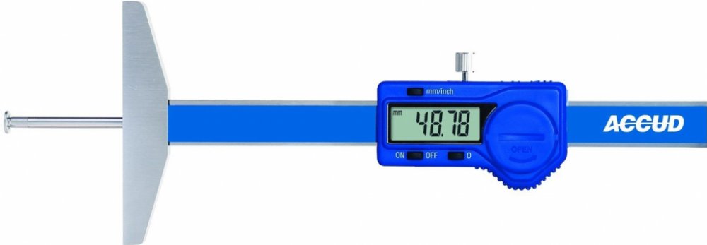 Hloubkoměr digitální se sadou výměnných měřících doteků. Výměnné doteky umožňují měřit jak základní hloubku, tak i hloubky různých zápichů, drážek a vybrání. Na tento typ hloubkoměru lze dodatečně připojit rozšiřovací můstek délky 180, 260 nebo 320 mm.