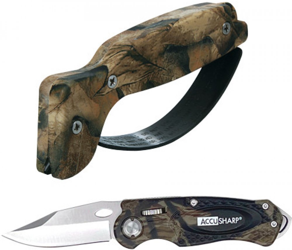 AccuSharp představuje perfektní kombinovanou sadu Camouflage. Spojuje kamuflážní brousek na nože a nástroje s kamuflážními sportovními noži.