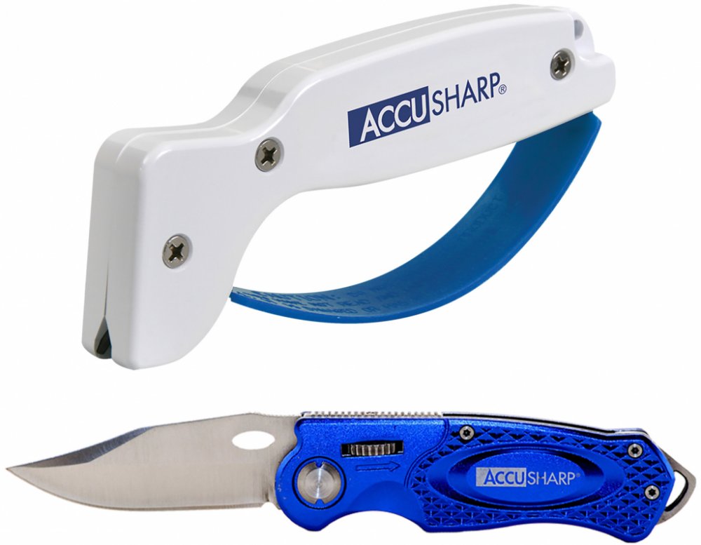 Skládací sportovní nůž AccuSharp je vyroben z eloxovaného hliníku a nerezové oceli, což zaručuje roky používání bez koroze. A díky patentovanému zámku koleček můžete tento nůž otevírat a zavírat pouze jednou rukou. Spona na opasek zajišťuje, že tento nůž budete mít vždy po boku, když ho budete potřebovat. Nůž je také vybaven nouzovým rozbíječem skla.