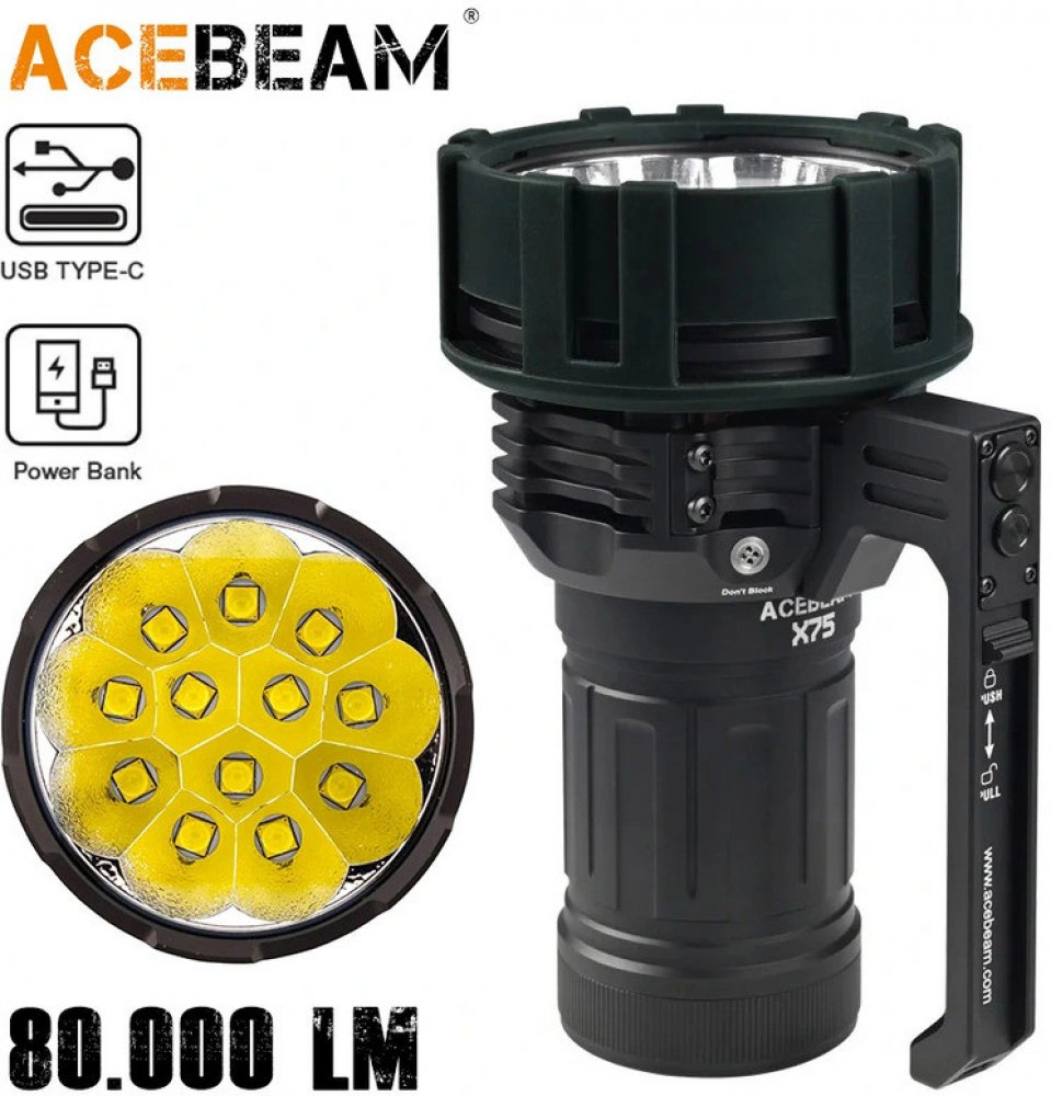 Acebeam 1240 g 80000 lm 1150 m 8.3 h