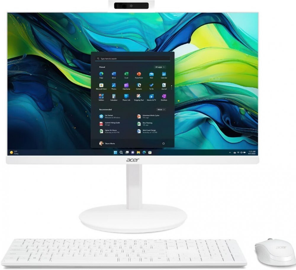 ACER PC AiO Aspire C24A-GRPL_JUWCU5120U_90W Part Number: DQ.BRNEC.005 Procesor Typ procesoru: Intel Model procesoru: Core 5 120U Processor Počet jader procesoru: 10 Frekvence procesoru: 1,4 GHz Zobrazení a grafika Úhlopříčka displeje: 23,8" ultra slim Rozlišení displeje: FHD 1920 x 1080 Typ displeje: Glare Dotykový displej: Ne Grafická karta: Intel Graphics Operační systém Operační systém: Windows 11 Operační paměť Kapacita paměti: 16 GB Typ paměti: DDR4 Mechanika a disk Typ pevného disku: M.2 SSD Kapacita disku: 1024 GB Výbava Reproduktor: Ano Webkamera: Ano Čtečka paměťových karet: Ano Optická mechanika: Ne VESA: Ano Ergo Stand: Ano (Tilt, Swivel, Pivot, Height adjustement) Připojení a Sítě LAN: Ne Wifi 6E: Ano Bluetooth: Ano Rozhraní HDMI out 1xUSB-C 6xUSB SD card slot Fyzické charakteristiky Barva: White Obsah balení Wireless keyboard Wireless optical mouse Záruka 1Year Výbava Acer blue light shield Acer Flickerless .