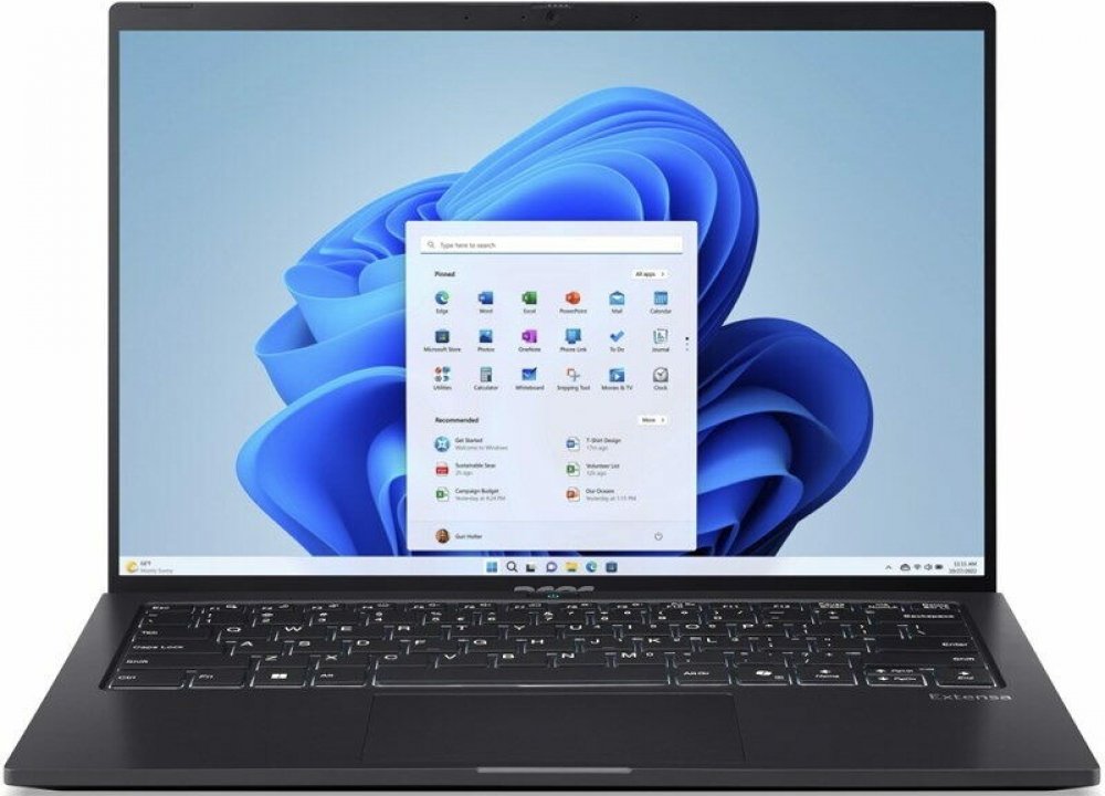 Notebook řady Extensa 14, procesor Intel Core Ultra 5 115U, Integrovaná grafická karta Intel Graphics, 14" Antireflexní displej s rozlišením 1920 x 1200 (Full HD+) (16:10), 512 GB SSD uložiště, Bluetooth 5.2, operační paměť 16 GB DDR5, operační systém Windows 11 Home.