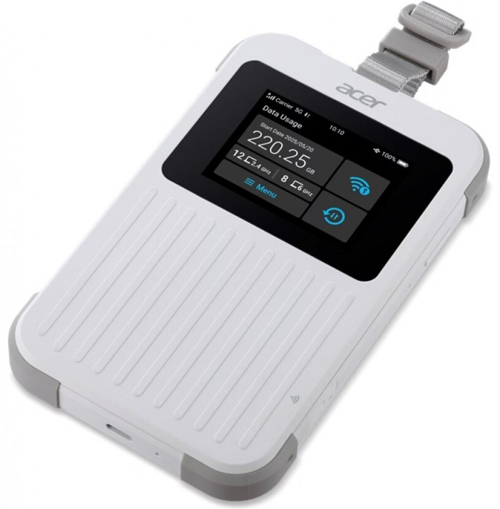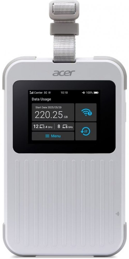 Acer Connect Enduro M6E - 5G<E dual connectivity mobile WiFi hotspot router, 2,4” Touch display, Mediatek Octa Core Cortex A78/A55 2.4GHz, 3GB LPDDR4X, Wifi 6E 802.11 a/b/g/n/ac/ax up to 32 devices, Dual band 2.4ghz+5ghz nebo 2.4GHz + 6GHz, speed AX3000, NFC, battery 8000 mAh (fast charging), 1x USB Type-C 3.0, NanoSIM & eSIM + VirtualSIM (SIMO), IP68 & odolnost proti pádu až z 122cm, MIL-STD 81