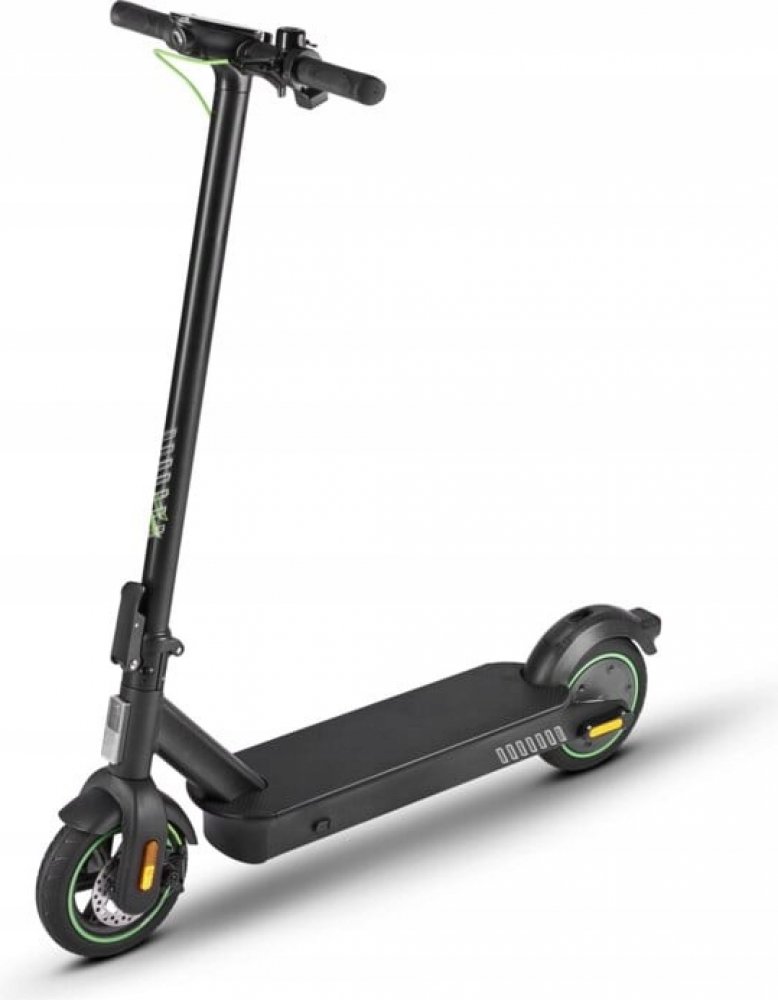 Co se týče kol, koloběžka má bezdušová kola s průměrem 8.5 palce, což zajišťuje hladkou jízdu na různých typech povrchů. Bezdušové kola minimalizují riziko defektu a zvyšují celkovou odolnost vozidla. Vozidlo je vybaveno kotoučovou brzdou na předním kole a elektrickou brzdou (e-abs) na zadním kole, což zaručuje efektivní a rychlé brzdění.