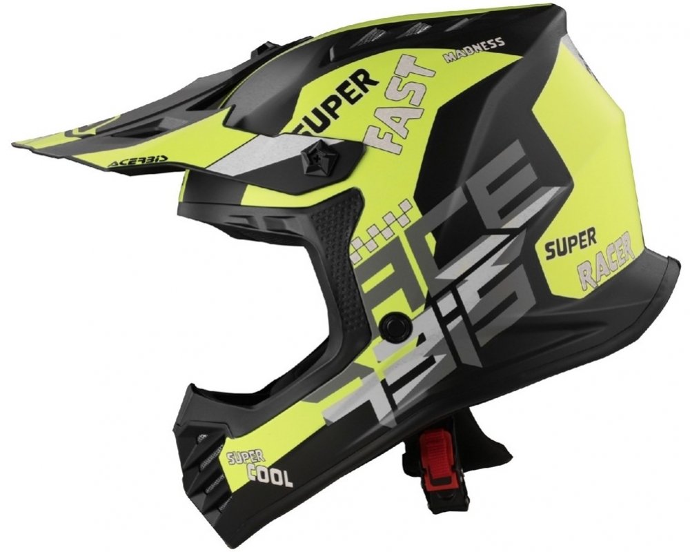 Homologovaná dětská přilba značky Acerbis, zajišťující vynikající ochranu a vyvážení přilby na hlavě. Přilba má nastavitelný kšilt a dokonalé odvětrávání na bradě a inovativní sání vzduchu a odvzdušnění přilby. Má vyjímatelné, hypoalergenní, pratelné vnitřní polstrování a zapínání na dvojité uzavření D-kroužku. Podrobnosti: Terénní přilba HOMOLOGACE ECE/ONU 22-06 Zapínání na dvojitý kroužkový řemínek Jedna vnější a jedna vnitřní skořepina Skořepina kompatibilní s krční výztuhou. Odnímatelný, hypoalergenní, prodyšný a pratelný vnitřek. Vnitřní strana Soft touch pro účinné uvolňování vlhkosti. Hmotnost 1150 g ± 50 g (velikost "YM") Výběr velikosti: kód 50 Y/S velikost 47-48 cm kód 52 Y/M velikost 49-50 cm kód 54 Y/L velikost 51-52 cm Materiály: • skořepina: termoplast Vyrobeno v Číně Nezbytná ochrana pro malého závodníka. Přilba musí dokonale sednout, nikde nesmí tlačit, nesmí se na hlavě točit a musí být přiměřeně těžká, aby zbytečně nezatěžovala malého pilota, vždyť váží +/- 1000 g. Každá přilba musí chránit především hlavu, takže když praskne kšilt, žádné neštěstí, pokud při větším karambolu se rozbije přilba a hlava zůstane celá je to super, přilba plní svůj účel. Proto nepouštějte malé jezdce na motorku bez ochranných prvků. Naše přilby splňují bezpečností podmínky a malým pilotům se budou určitě líbit. Proč značku Acerbis: Protože značka Acerbis je na světovém trhu od roku 1973 a neustále vyvíjí nové inovativní a ochranné výrobky se stejným nadšením a vášní, jako v době svého vzniku. A proto je tak zárukou vysoké kvality a propracovanosti výrobku. Za kvalitu svého zboží ručí a nedopustí, aby nesplňovalo podmínky, které jsou od něj požadovány (homologace,voděodolnost,savost,pevnost,barevnost,pružnost,vzdušnost....) Výroba: Všechny výrobky jsou vyvíjeny a testovány, v jejích zkušebnách a konzultovány s předními motokrosovými jezdci, aby odpovídaly všem parametrům. Nejen z hlediska bezpečnosti,ale i pohodlné, bezproblémové jízdy. Jsou z kvalitního materiálu, v nejmodernějším designu, odpovídajícímu světovému trendu. Výborná volba pro motokros.