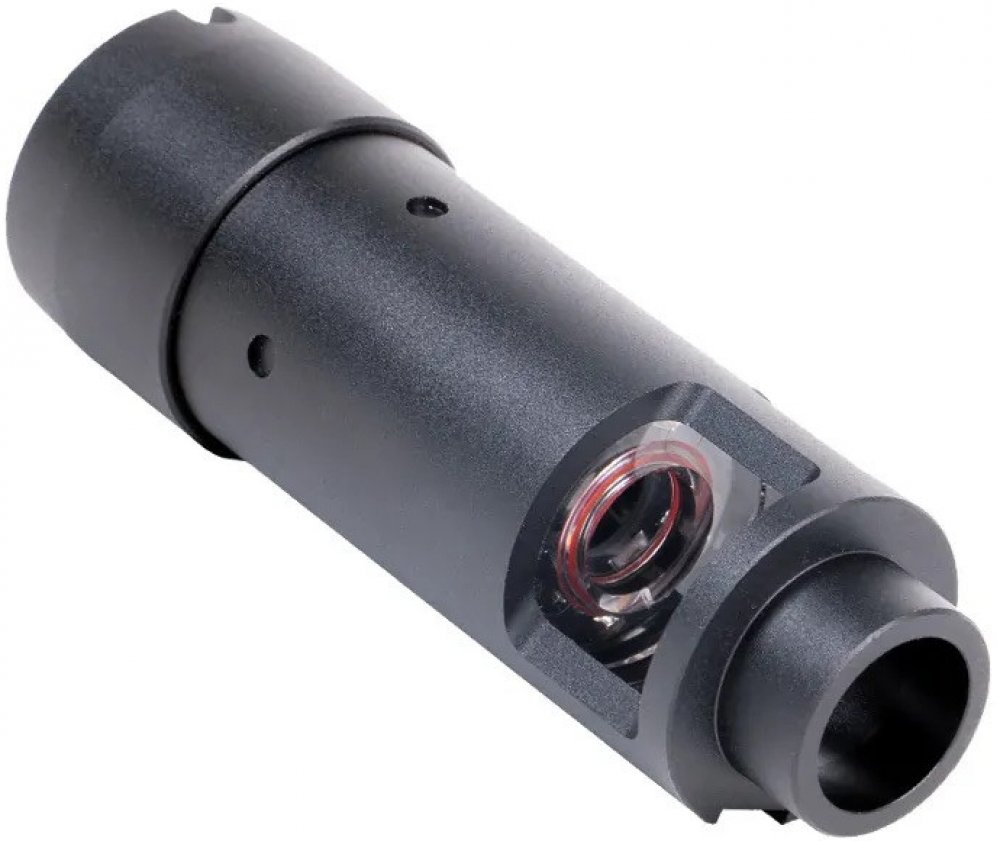 Tlumič je navíc odolný proti prachu a stékající vodě (IP64), takže je ideální i pro venkovní hry. Vestavěná Li-Ion baterie zajistí nasvícení až 24 000 kuliček a po 5 minutách nečinnosti se zařízení samo přepne do úsporného režimu. O nabíjení se postará USB-C konektor a tlumič je plně nabitý po 2,5 hodinách (nabíjecí USB-C kabel je součástí balení). Na tlumiči se nachází závit 14 mm CCW (levotočivý), který je běžný u airsoftových zbraní (pokud máte AK se závitem 24mm CW, bude potřebovat redukci).