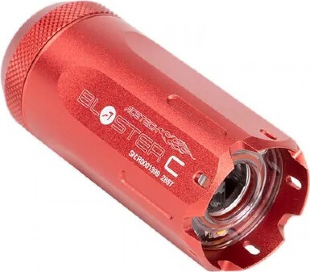Nasvětlovací tlumič AceTech BLASTER C v červeném provedení představuje stylové řešení pro airsoft hráče, kteří hledají nejen výkon, ale i výrazný vizuální vzhled. Tento inovativní tracer tlumič kombinuje profesionální nasvětlování zelených kuliček s efektní imitací výšlehu plamene pomocí 3 RGB LED diod. Červená eloxovaná povrchová úprava dodává vaší airsoftové zbrani jedinečný a agresivní vzhled.