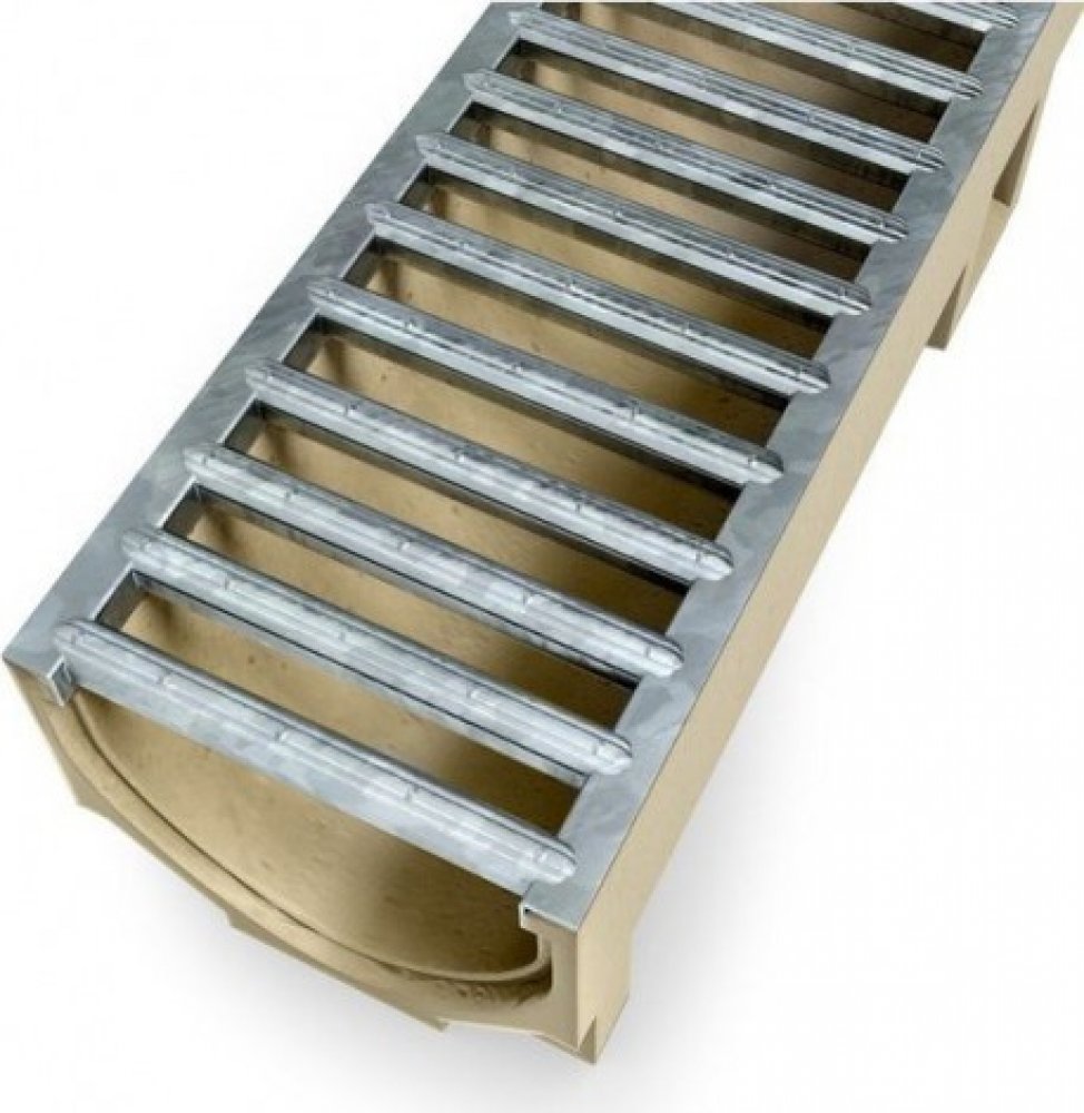 Pro pojezd osobních automobilů. Toto žlabové těleso z polymerického betonu je osazeno pozinkovaným roštem. Bezšroubová aretace roštu umožňuje volný přístup do žlabu a tím pádem snadné čištění.