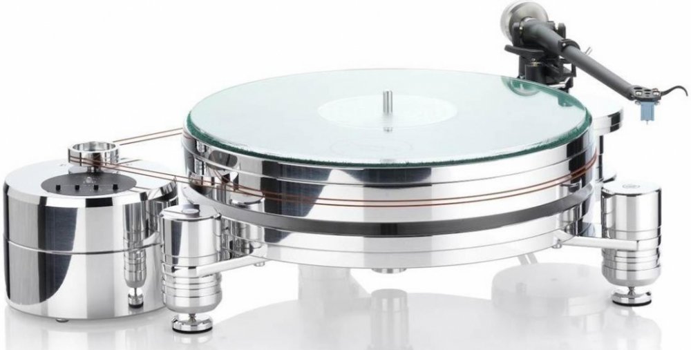 Pohon celohliníkového talíře o hmotnosti 6 kg řeší samostatně oddělený synchronní motor Berger Lahr s řemenovým pohonem ze směsi nylonového silikonu.