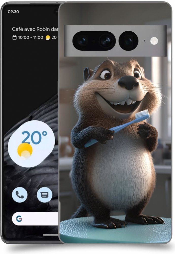 Kryt s motivem Bobr zubař na Google pixel 7 pro tiskneme ve vysokém rozlišení. Živé barvy a čistotu oceníte při každém pohledu na Váš telefon.