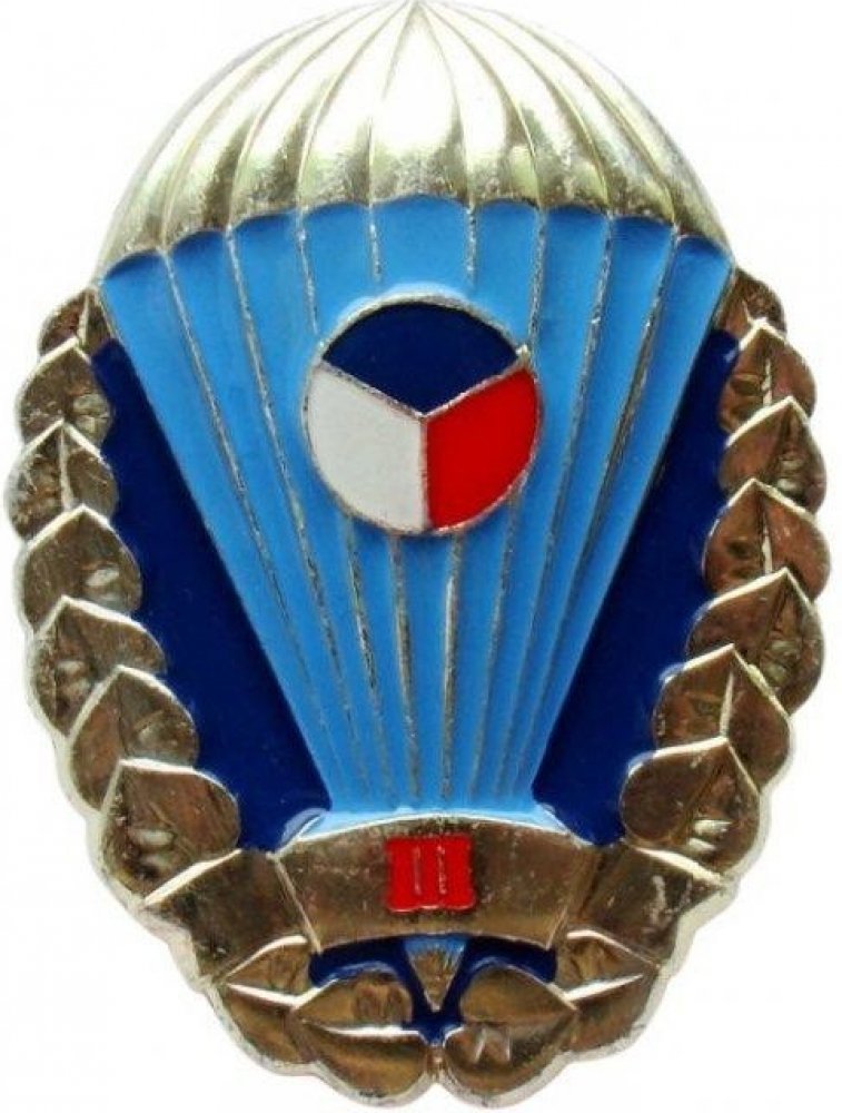 Odznak pro výsadkáře Armády České republiky zlatý III. stupně originálpoužívané od roku 1993 do 2011po splnění 200 seskoků s padákem, z toho nejméně 40 v noci, 25 s osobním zásobníkem, 20 do neznámého terénu, 10 s přistáním do vody, 5 se samovysazením z výšky nejméně 1000 m s přistáním do vzdálenosti 10 m od vyznačeného středu doskokové plochy. na zadní straně šroubovací uzávěrlisováno ze slitinu hliníkuHmotnost: cca 9 gRozměry: cca 5 x 3,7 cmArmádní originál