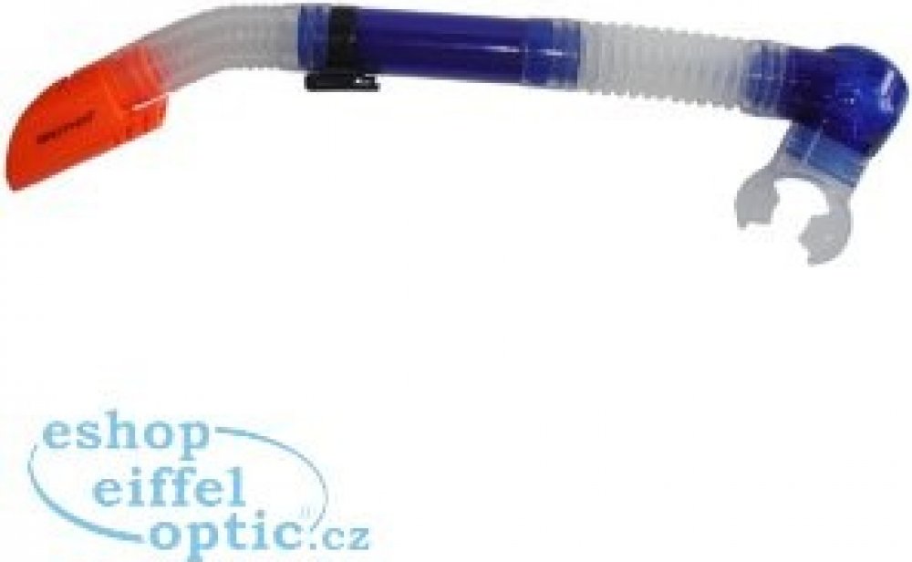 Silikonový šnorchl s vrchní krytkou a výfukem - balení blistr, materiál - 100% silikon. Vlastnosti silikonu jsou zachování pružnosti a kvalitních těsnících vlastností po dlouhou dobu používání a při působení povětrnostních vlivů. Šnorchl má velmi kvalitní vrchní krytku zabraňující průniku šplouchající vody, při plavání na hladině a případně spodní výfuk umožňující vyfouknutí vody ze šnochlu po vynoření, při potápění do hloubky.