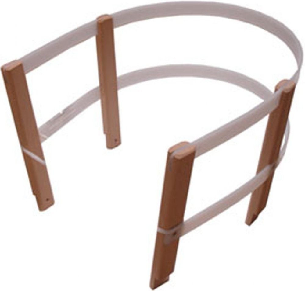 Ohrádka na sáně. Ohrádka se upíná na saně pomocí dřevěných držáků, které se připrevní na rám saní, pomocí přiložených vrutů. Ohrádka je variabilní a přizpůsobí se jakékoli šíři sedáku v rozmezí 30 - 50 cm. Oblouk tvoří měkké lamely, které se bez problémů poddají a mohou se upevňovat podle potřeby na různé šíře sedáků saní