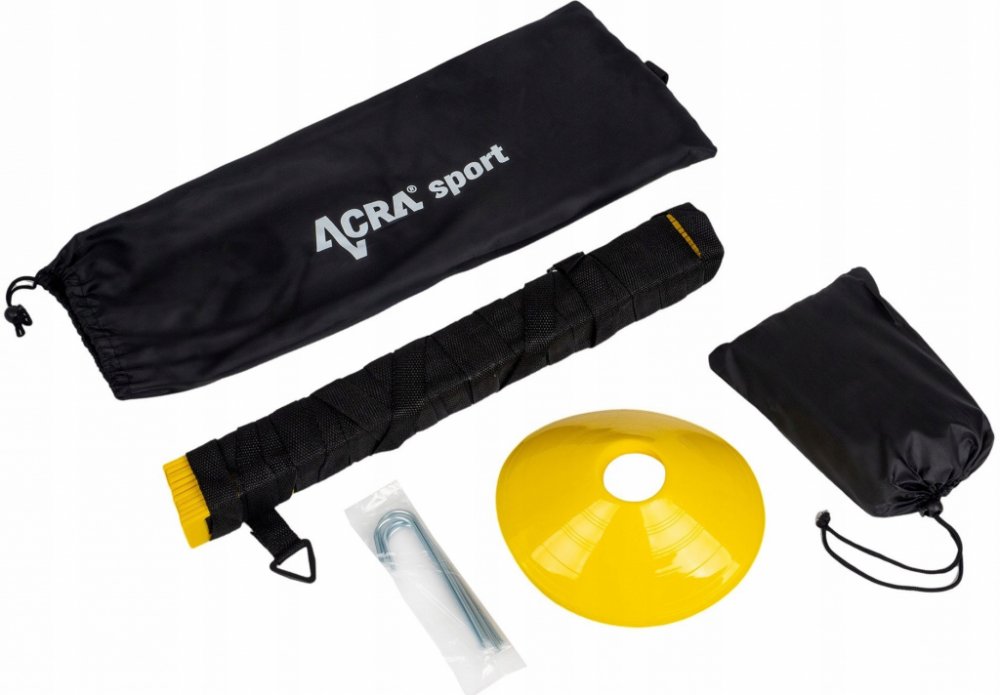 Tréninková Agility sada Basic Acra je skvělým pomocníkem pro vaše tréninky v tělocvičně i venku. Agility překážky jsou vhodné pro sportovce napříč různými sportovními obory, kluby i školy. S touto sadou si můžete zlepšit kondici a efektivně trénovat rychlost a koordinaci jak dolních, tak horních končetin. Sada pro základní trénink Acra obsahuje odporový padák na běhání, šest vytyčovacích met a jeden agility žebřík s nastavitelnými žlutými lamelami o délce 6 m. Součástí sady je i praktický vak z polyesteru s popruhem přes rameno, který usnadňuje přenášení a uskladnění mezi jednotlivými tréninky.