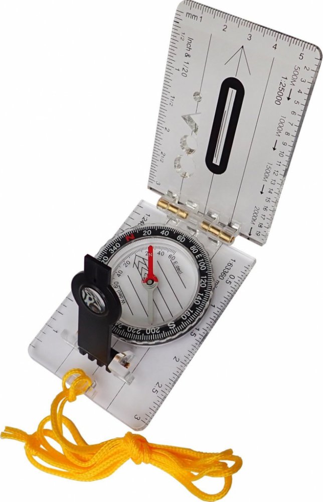 Buzola skládací má rozkládací destičku s kovovými panty, která umožňuje zmenšení těla buzoly pro lepší skladnost. Destička s orientační směrovkou pro určení úhlu trasy je opatřená měřítky pro určení vzdáleností na mapě, dále je součástí destičky lupa na kloubu a plastovém pásku pro čtení drobných nápisů v mapě. Buzola slouží pro orientační běh nebo pro turistiku a k...