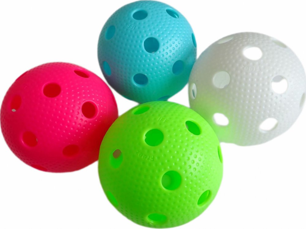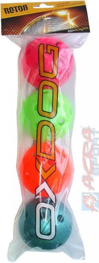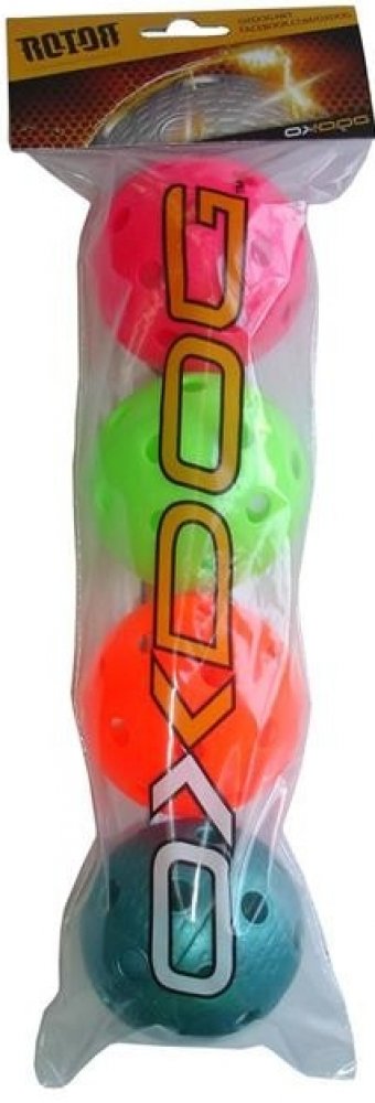 Oxdog Rotor florbalové míčky certifikované, sada 4ks v sáčku. Jedná se o závodní míčky ROTOR - IFF certifikované. Míček je díky svému povrchu podobnému golfovému míčku stabilnější a má lepší obtok ve vzduchu. Tento míček lze použít při zápasech pořádaných ČFBU. Dodáváno v mixu různých barev.