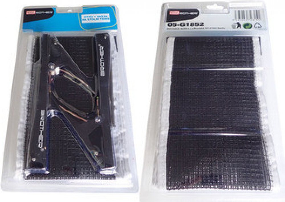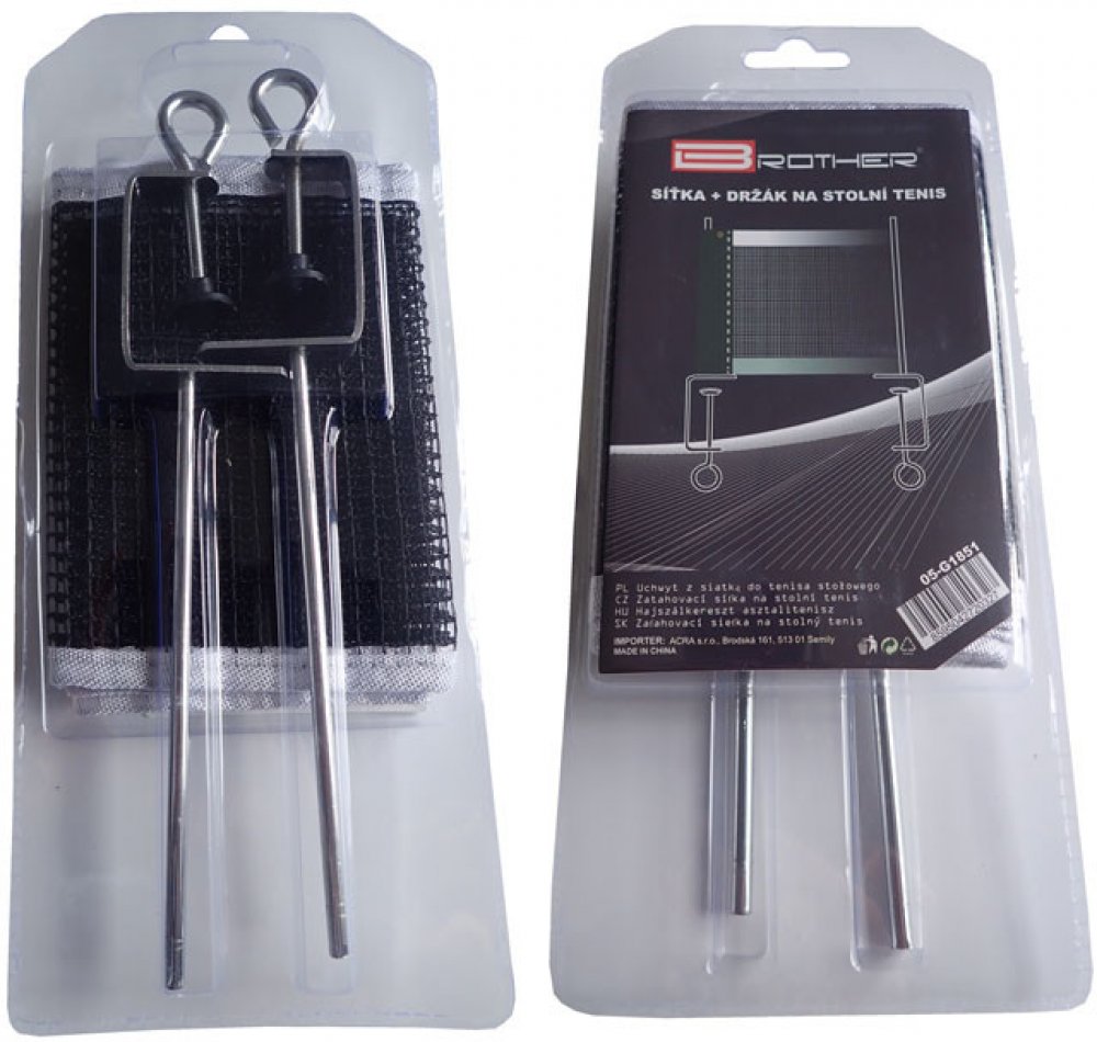 Sada na stolní tenis v blistru - rychloupínací držák + síťka. Umožňuje jednoduché připevnění síťky na pingpongový stůl.