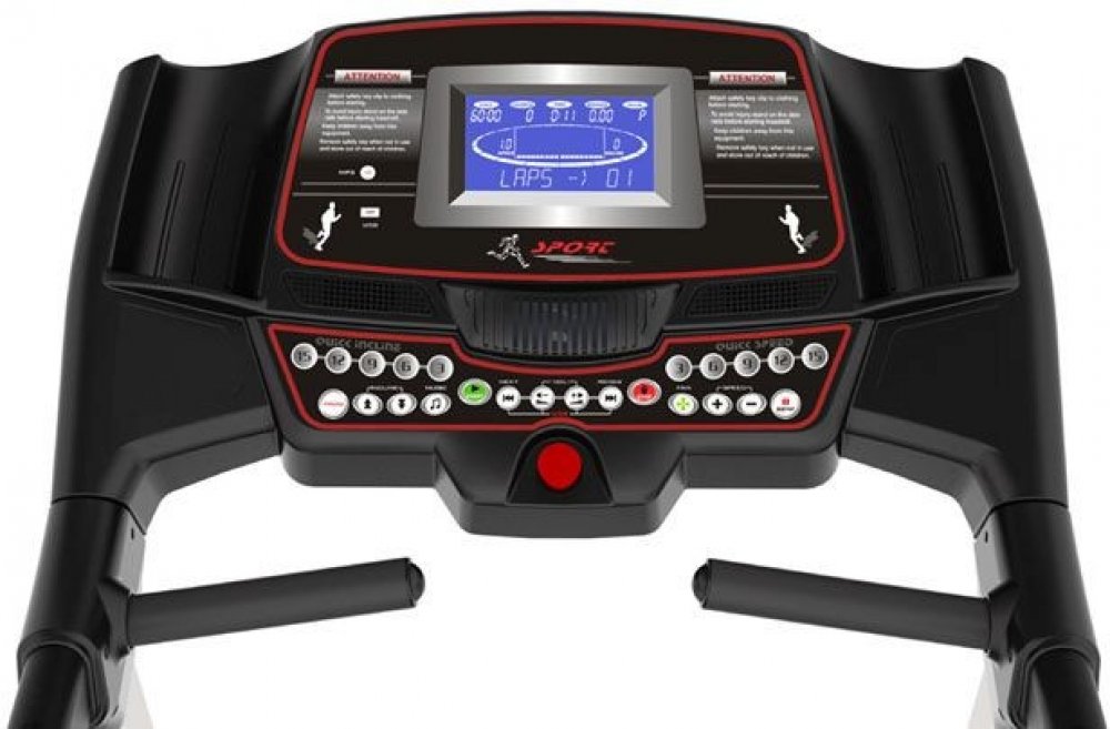 - Rukojeti na ovládacím panelu jsou opatřeny snímačem tepové frekvence. Pás je dále vybavený 99 různými přednastavenými programy, s různou intenzitou běhání s úpravami náklonu, a tím i intenzity zátěže.