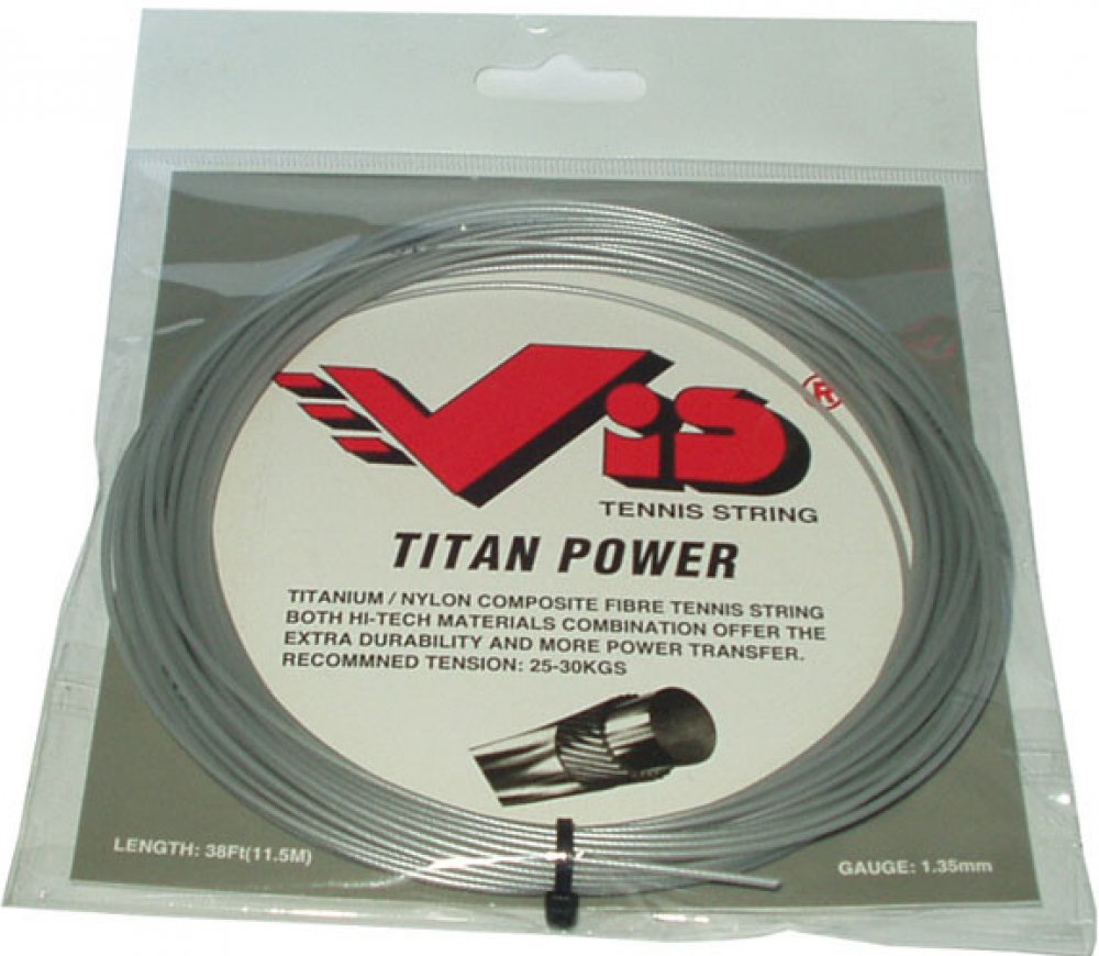 Tenisový výplet Titan Power 1,35 mm Délka: 11,5 m. Výhoda: tužší, odolný výplet. Délka vhodná pro: všechny velikosti hlavy rakety do 740 cm2. Barva: viz foto.