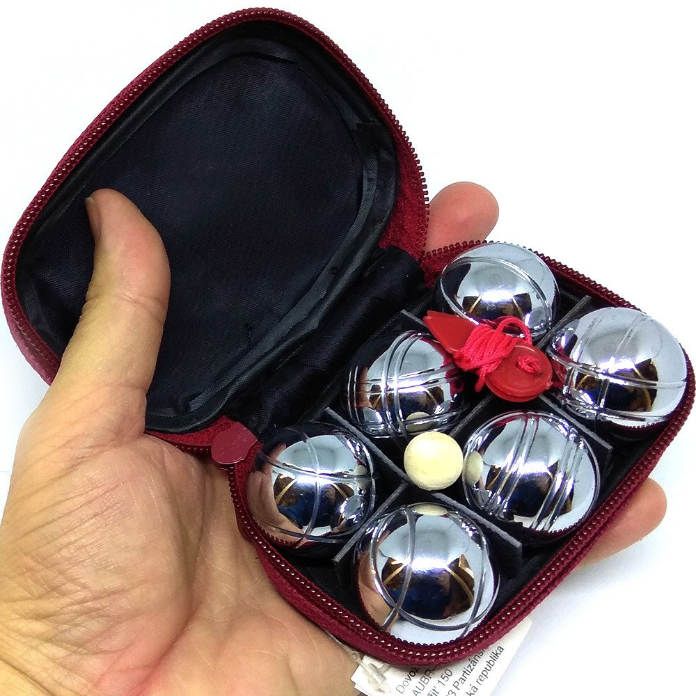 Minipetanque Technické údaje: - 6 koulí - chromované - v šitém pouzdře - průměr koule 32 mm - Doporučeno pro 2 - 3 hráče. - Dodáváme ve vínovém pouzdře. Obsah balení: - 1 x Minipetanque 6 koulí v pouzdře