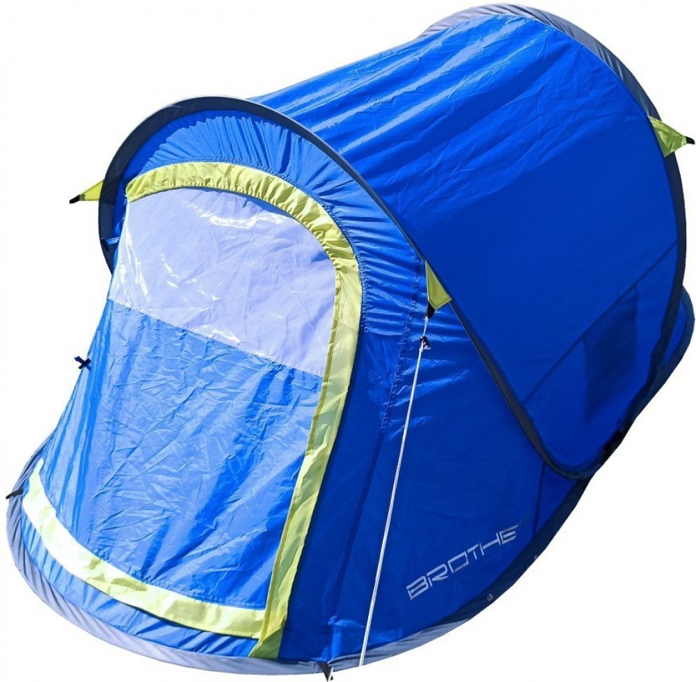 - Konstrukce: Pružné sklolaminátové nosné pruty umožňují, aby se stan po vyndání z obalu automaticky postavil. Součástí jsou ocelové kolíky a upínací šňůry pro pevné uchycení.