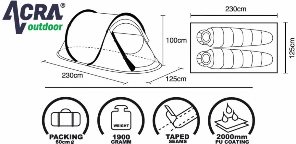 2.5 kg 230 cm 3000 mm 2000 mm 125 cm 100 cm 2 1 Acra turistické tunelové
