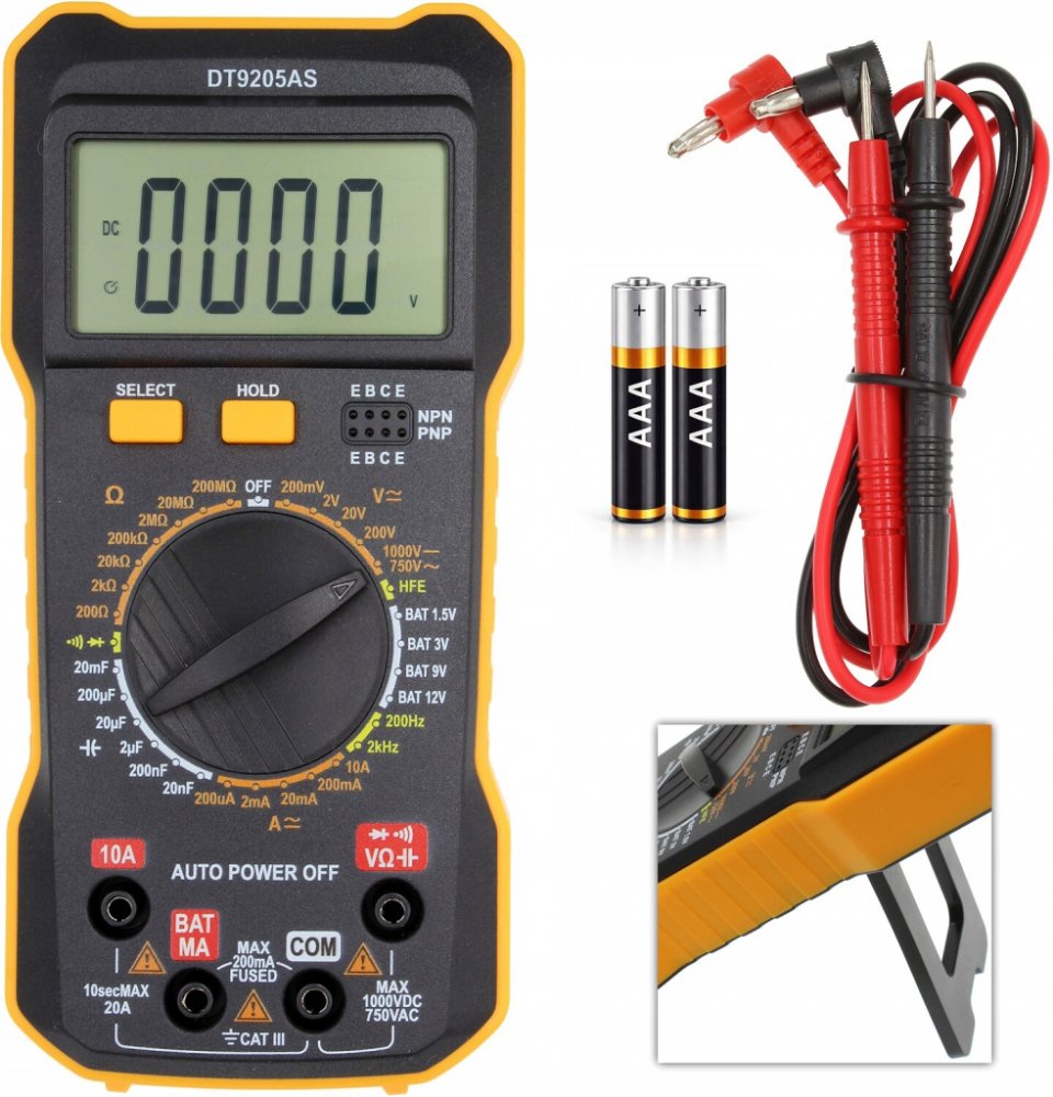 - Opěrka umožňující použití multimetru ve svislé poloze
