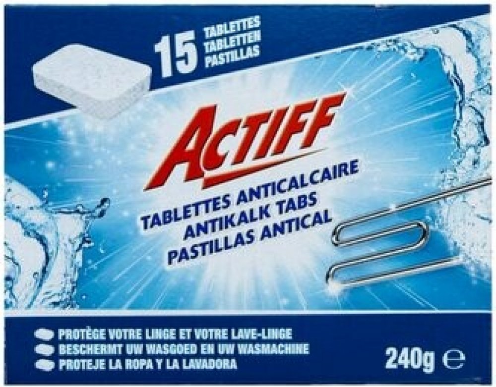 Actiff Antikalk Tabs 15ks - 240g - tablety proti vodnímu kameni do pračkyActiff Antikalk Tabs jsou praktické tablety proti vodnímu kameni do pračky, navržené tak, aby změkčily vodu a pomohly předcházet usazování vodního kamene v pračce. Díky jednoduchému použití snadno ochráníte svůj spotřebič a ušetříte čas i starosti spojené s pravidelnou údržbou.K čemu produkt sloužíTablety proti vodnímu kameni do pračky Actiff Antikalk slouží k redukci negativních dopadů tvrdé vody na vnitřní části pračky. Změkčením vody minimalizují usazování vodního kamene, což vede k lepší funkci topných těles, hadic a dalších součástí pračky. Produkt je vhodný pro běžné domácí prací systémy.Jaké má benefityJednoduché dávkování – stačí vložit jednu tabletu do pračky.Pomáhá prodloužit životnost pračky tím, že snižuje usazování vodního kamene.Vhodné pro všechny běžné prací programy a typy praček.Praktické balení 15 ks pro několik použití.Šetří čas a eliminuje potřebu komplikovaných sypkých nebo tekutých přípravků.Praktické výhodyActiff Antikalk Tabs jsou navrženy pro zákaznice, které hledají jednoduché a spolehlivé řešení bez časově náročné údržby. Tablety umožňují pravidelnou ochranu pračky bez nutnosti měřit či odměřovat kapaliny.Jak jej správně používatVložte jednu tabletu přímo do bubnu pračky nebo dle pokynů výrobce pračky.Používejte při běžném praní podle potřeby, podle tvrdosti vody a frekvence praní.Skladujte tablety na suchém místě a mimo dosah dětí.Proč si vybrat právě tento produktActiff Antikalk Tabs kombinují jednoduchost použití s efektivní ochranou proti vodnímu kameni. Jde o praktické řešení pro domácnosti, kde je potřeba ochránit spotřebiče bez zbytečné komplikace. Značka Actiff nabízí produkt v kompaktním balení vhodném pro pravidelné používání.Tipy pro maximální efektivituSledujte frekvenci používání podle tvrdosti vody - v oblastech s tvrdou vodou může být vhodné tabletu používat častěji.Pro udržení pračky v dobrém stavu kombinujte pravidelné používání tablety s běžnou péčí o filtr a těsnění.Vždy dodržujte pokyny výrobce pračky pro umístění přípravků do bubnu.Shrnutí výhod produktu Actiff Antikalk Tabs 15ks - 240gActiff Antikalk Tabs jsou jednoduchým a účinným pomocníkem v boji proti vodnímu kameni. S nimi snadno změkčíte vodu, snížíte riziko usazování vodního kamene a podpoříte dlouhodobou spolehlivost své pračky. Ideální volba pro praktické a efektivní domácí používání.
