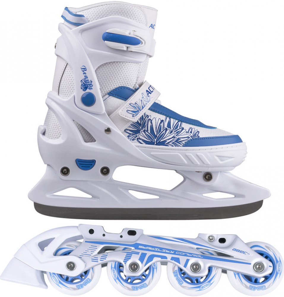 Nastavitelné brusle 2v1 Action Frio Alu jsou unisexové brusle, které díky svému sportovnímu designu a decentnímu zpracování s květinovými motivy padnou do oka každé dívce či ženě. V zimě je snadno opatříte nožem na led z certifikované nerezové oceli a v létě zase hliníkovým rámem pro inline bruslení. Součástí inline podvozku jsou odlehčená ložiska ABEC 5 Carbon a kolečka vyrobená z polyuretanové gumy, které tak zajišťují příjemné jízdní vlastnosti bez rušivých vibrací.