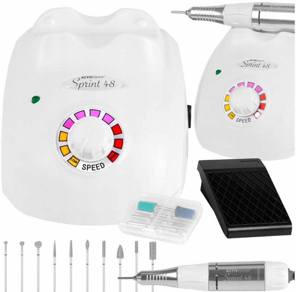 Přátelské zařízení pro vásSprint 48 Basic je frézka, která je ideální jak do domácnosti, tak do kosmetického salonu. Díky svým kompaktním rozměrům nezabere žádné místo. Frézka má příjemný, ergonomický design.Kvalita a výkonHlava této frézky je vyrobena z decentního materiálu. Váží pouhých 160 g a dobře se drží v ruce. Dosahuje otáček v rozmezí 0 až 30 000. Snadné použitíOvládání přístroje je velmi jednoduché a intuitivní. Rychlost otáčení se nastavuje pomocí kolečka. Můžete si vybrat mezi levou a pravou rotací. Jediným stisknutím tlačítka se zapíná a vypíná stav aktivity. Součástí balení je nožní pohon pro snadné připojení k základně.Twist-Lock: snadná výměna nožeZapomeňte na používání klíčů a kolíků, rukojeť TWIST-LOCK je řešení, které umožňuje rychlou a snadnou výměnu frézy jediným pohybem. Otočením doleva frézu odemknete, uvolníte a vyměníte. Otočením doprava zámek zavřete a nůž upevníte. Originální výrobekOriginální nože Sprint 48 mají na hlavě logo a individuální sériové číslo.Specifikace: Vnitřní střihač je vybaven speciálními otvory, které jsou součástí balení:- Plynulá regulace otáček v rozsahu 0-30 tis. ot - Otáčení vlevo a vpravo - Ergonomický kryt - Rukojeť Twist-Lock (snadná výměna frézy) - Ovládání na základně a pomocí nožního pohonu - Sada obsahuje: frézovací hlavu, základnu frézky, nožní pedál, sadu fréz, návod, záruku.Technické údaje:Příkon 35 W Průměr frézy 2,32 Napájení 220-240 V / 50-60 Hz Krouticí moment: 3,5 Ncm Hmotnost základny - 0,78 kg Rozměry základny - 150 x 110 x 70 mm Hmotnost hlavy - 160 g Rozměry hlavy - 13,5 cm x 2,7 cm Frézka splňuje normy Evropské unie Frézka WHITE SPRINT 48. Profesionální frézka určená především pro práci v kosmetických salonech, ale i pro domácí použití. Díky malým rozměrům a intuitivnímu ovládání je práce na něm opravdovým potěšením. POZORNOST!!! ORIGINÁLNÍ FRÉZKY SPRINT48 POUZE S LOGEM A INDIVIDUÁLNÍM SÉRIOVÝM ČÍSLEM NA HLAVICE.Sada obsahuje: - frézovací hlava - podstavec frézky - nožní pedál - sada fréz - instrukce Technická data: - výkon 40W - plynulá regulace otáček v rozsahu od 0-30tis. obrat - průměr fréz 2,32 - rukojeť TWIST-LOCK (výměna frézy jedním pohybem) - napájení 110-220 V / 50-60Hz - ergonomické pouzdro - rotace vpravo a vlevo - ovládání nožního pedálu a v základně - základní hmotnost - 0,78 kg - rozměry základny - 150 x 110 x 70mm - hmotnost hlavy - 150 g (bez kabelu) - rozměry hlavy - 153 x 28