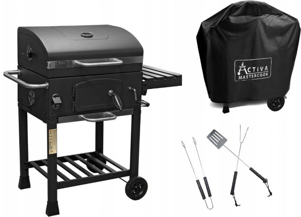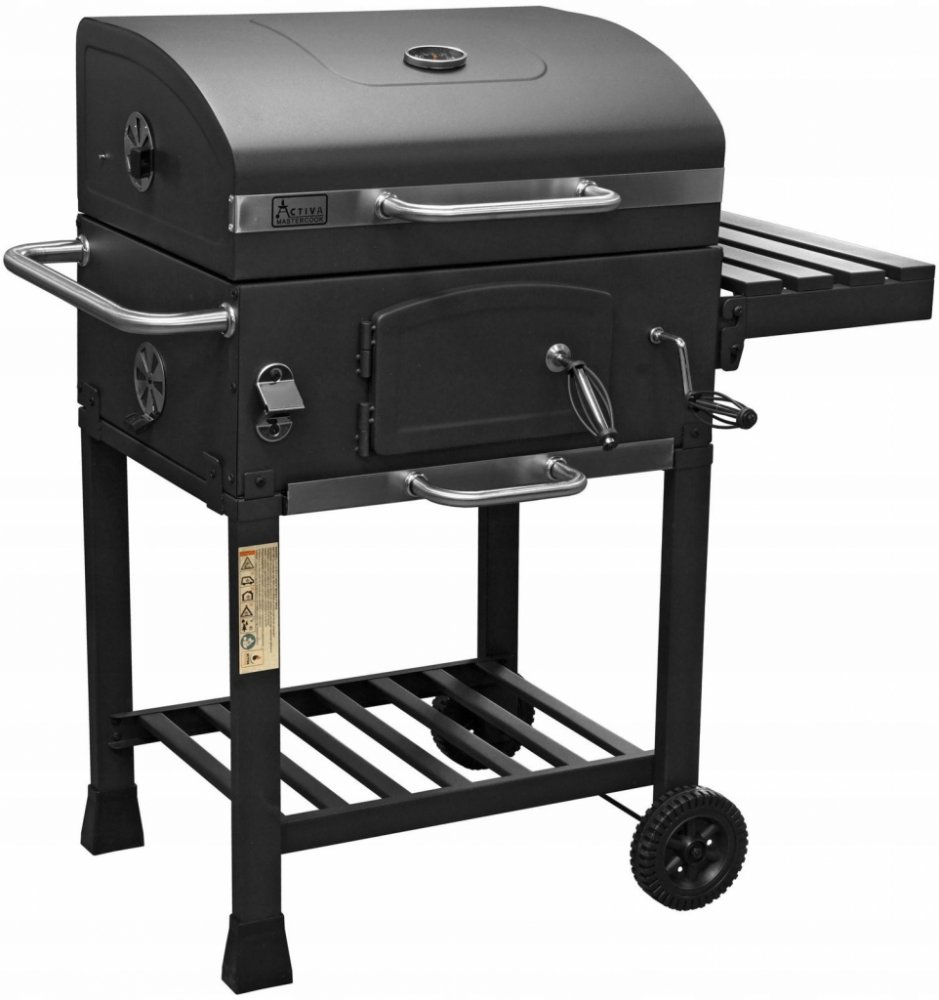 ACTIVA na dřevěné uhlí 2352 cm2 s litinovým roštem 30 kg ocelové černé 107 cm 67 cm 115 cm