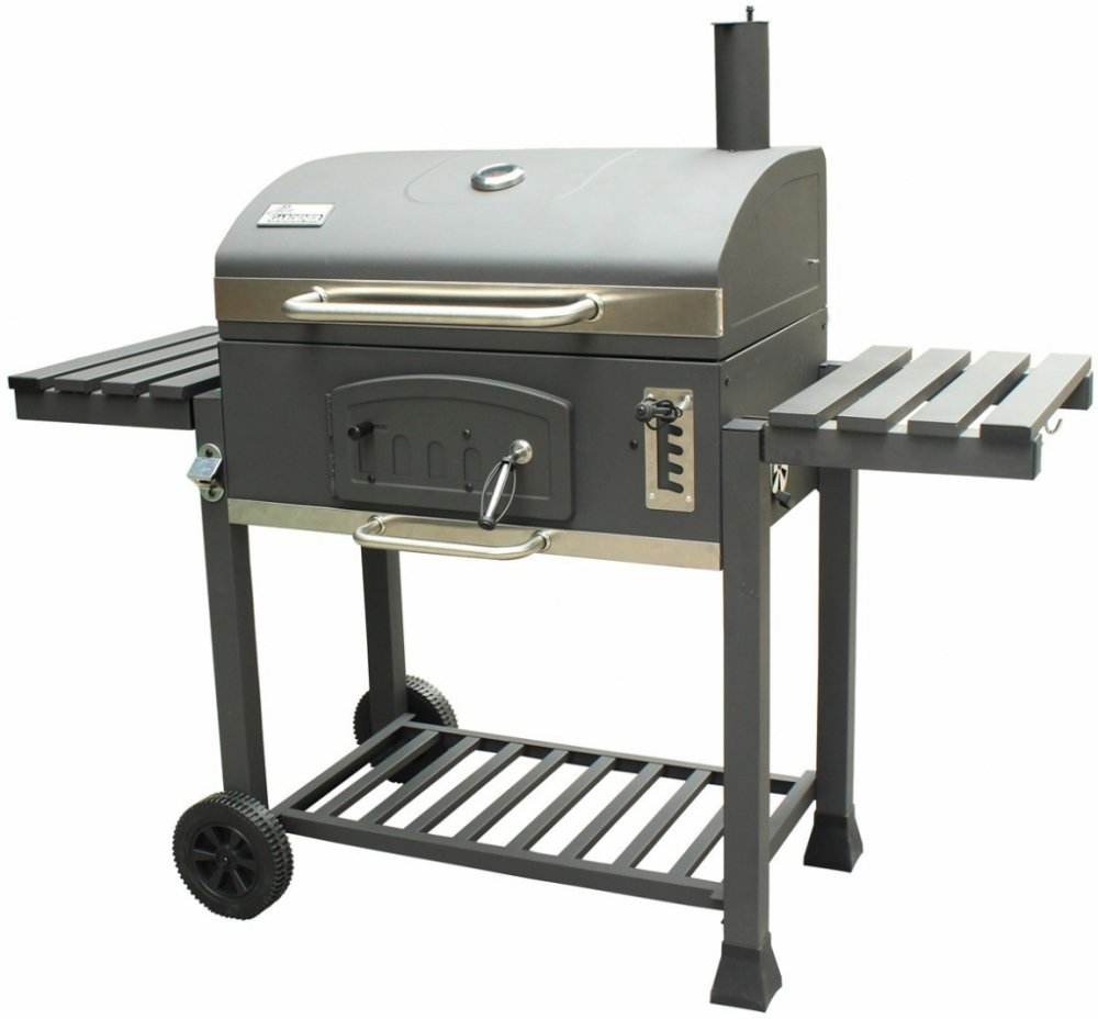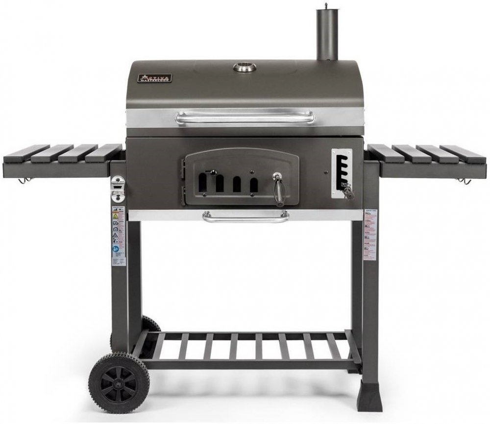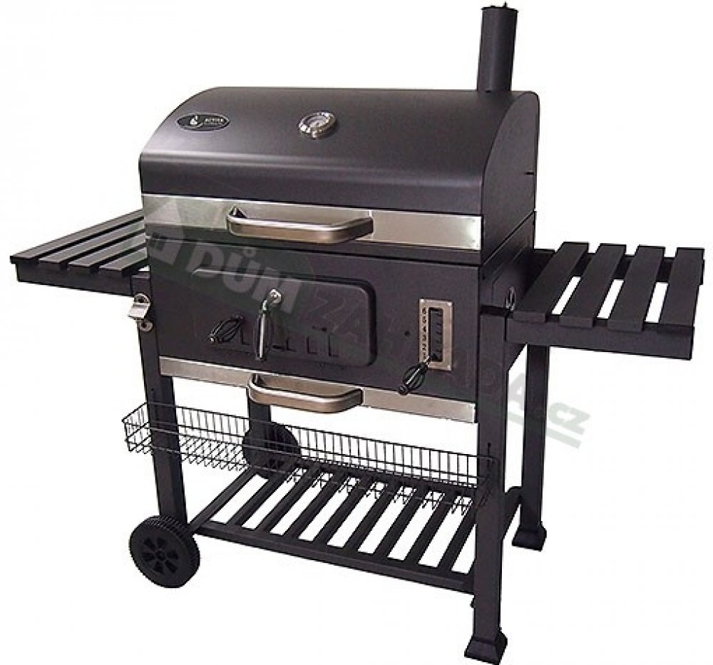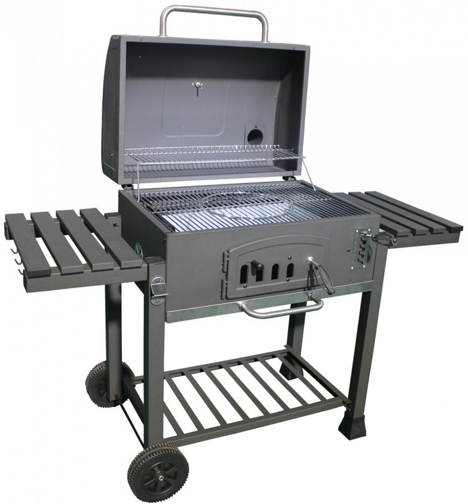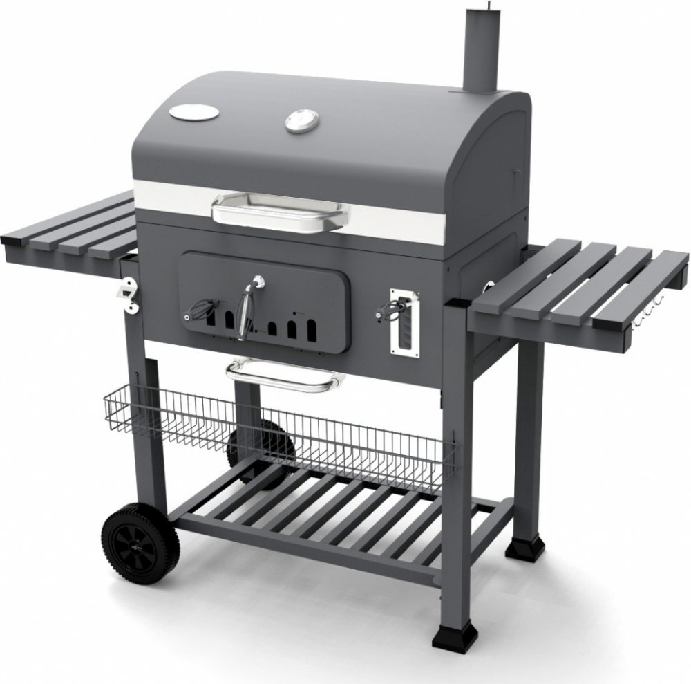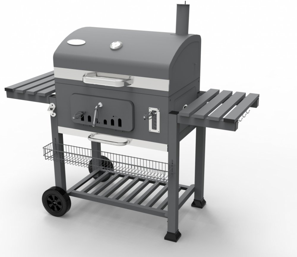 Tento gril s nádherným klasickým designem se velmi jednoduše obsluhuje a má řadu praktických doplňků. Kovové plochy grilu jsou opatřeny kvalitní vrstvou ohnivzdorné práškové barvy, velký dělený grilovací rošt je opatřen odolným smaltem a přídavný výklopný rošt je pochromovaný. Na přídavném roštu můžete pokrmy udržovat ve správné teplotě anebo v kombinaci s víkem využít možnosti nepřímého grilování. Regulace teploty je možná několika způsoby. Buď pomocí 2 ventilačních otvorů ve víku a 2 v těle grilu anebo pomocí výškově regulovatelné vany na uhlí. Rozžhavené uhlí tak pomocí nastavovací páky podle potřeby lehce přibližujete nebo oddalujete od grilovaného pokrmu. Pro snadné přikládání i během grilování je tělo grilu opatřeno v čele velkými dvířky. Ve spodní části grilu je potom odnímatelný popelník. Pro sledování teploty je ve víku grilu umístěn teploměr.