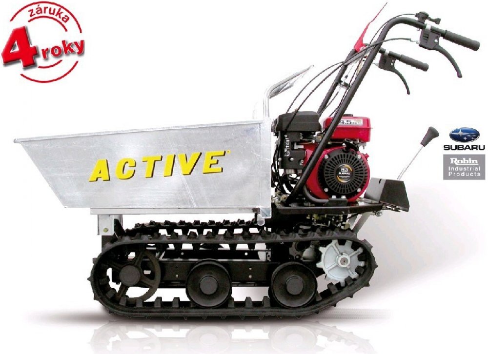 Pásové přepravníky ACTIVE Vám umožní manipulaci s materiálem i na velmi těžko dostupných místech. Stavby, stavební provozy, zemědělství, zahradnictví a všude tam, kde je kvůli ztíženým podmínkám obtížná bezpečná manipulace a přeprava jakýchkoliv těžkých nákladů, jsou tyto místa přímo předurčeny pro pásové přepravníky značky ACTIVE. Často používaný je tento přepravník na staveništích, při rekonstrukcích budov, ale také při zakládání zahrad, protože pásy rovnoměrně rozkládají hmotnost stroje s nákladem a ten se neboří a nezanechává rýhy v terénu. Přepravit bezpečně těžký náklad kamkoliv potřebujete Vám tyto stroje usnadní i díky důmyslným konstrukčním prvkům - sklápěcí korba , nastavení i pro přepravu rozměrných nebo sypkých nákladů, odolné pásy s výbornou trakcí, moderní a spolehlivé japonské motory Robin Subaru.