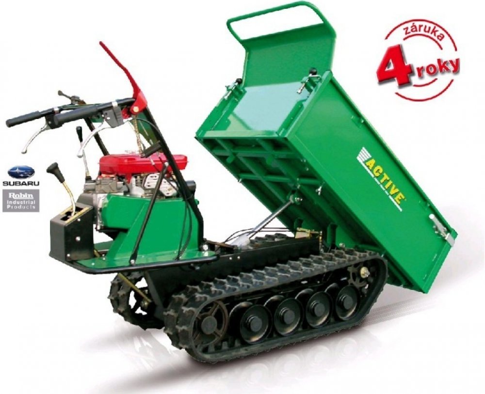 Často používaný je tento přepravník na staveništích, při rekonstrukcích budov, ale také při zakládání zahrad, protože pásy rovnoměrně rozkládají hmotnost stroje s nákladem a ten se neboří a nezanechává rýhy v terénu. Přepravit bezpečně těžký náklad kamkoliv potřebujete Vám tyto stroje usnadní i díky důmyslným konstrukčním prvkům - sklápěcí korba, nastavení i pro přepravu rozměrných nebo sypkých nákladů, odolné pásy s výbornou trakcí, moderní a spolehlivé japonské motory Robin Subaru.