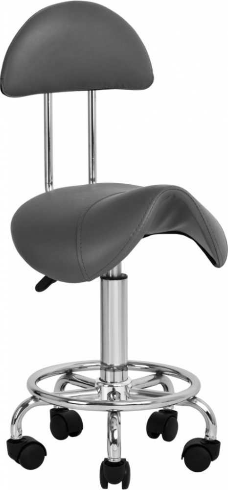 Kadeřnická a kosmetická stolička 6001 GreyPohodlná, robustní kosmetická stolička s opěradlem, s profilovaným sedákem, na pětiramenném rámu s plastovými kolečky. K dispozici v ŠEDÉ barvě, nepostradatelný kus nábytku v kosmetickém salonu. Rozměry balení : 40x40x23 cm